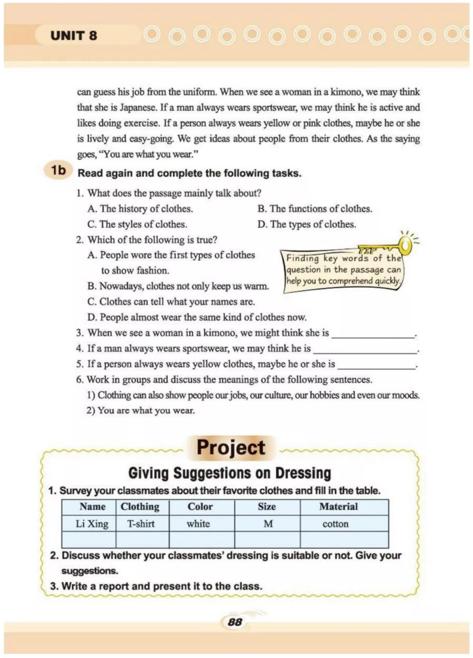 你帮助人们选择合适的衣服很重要。