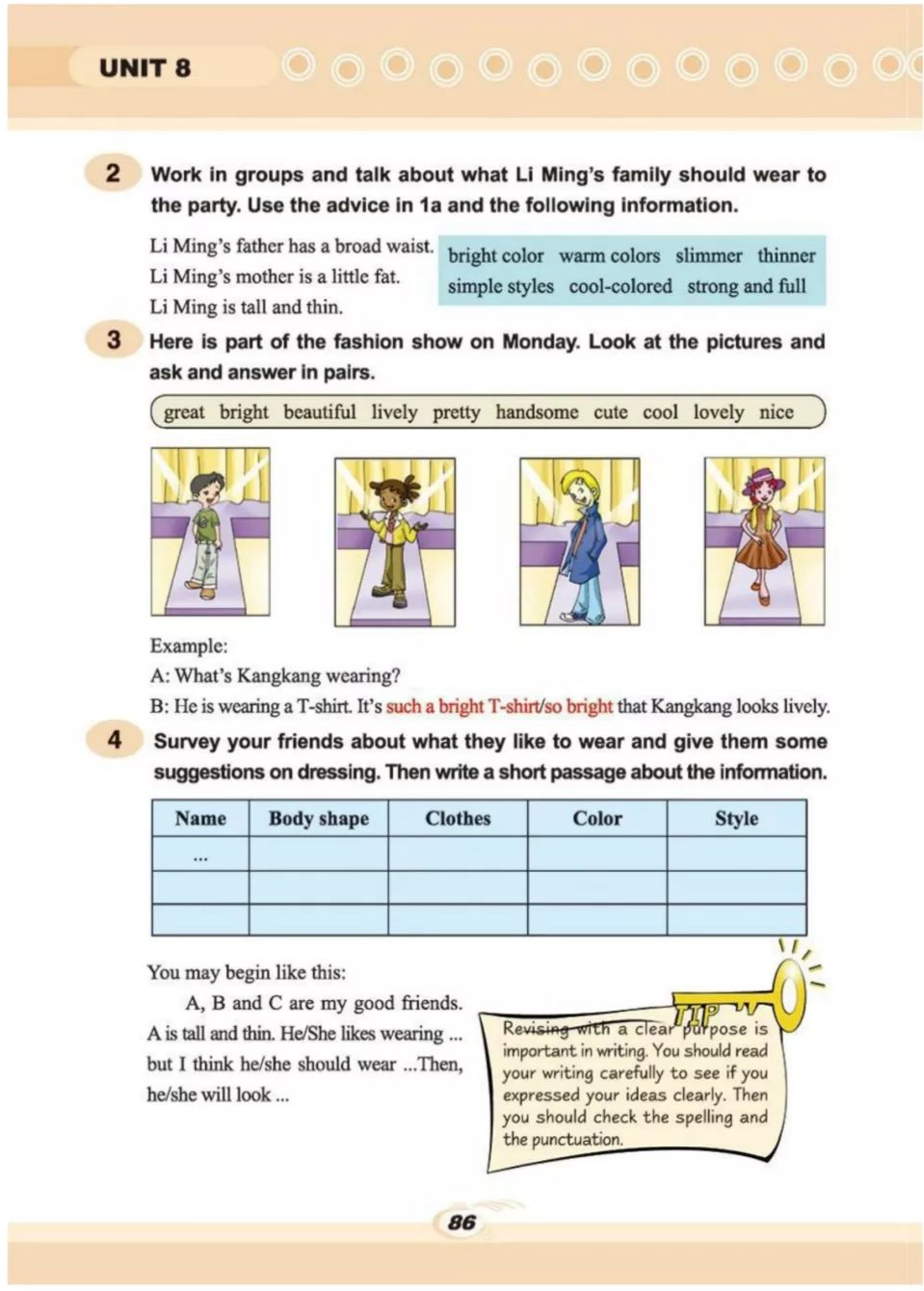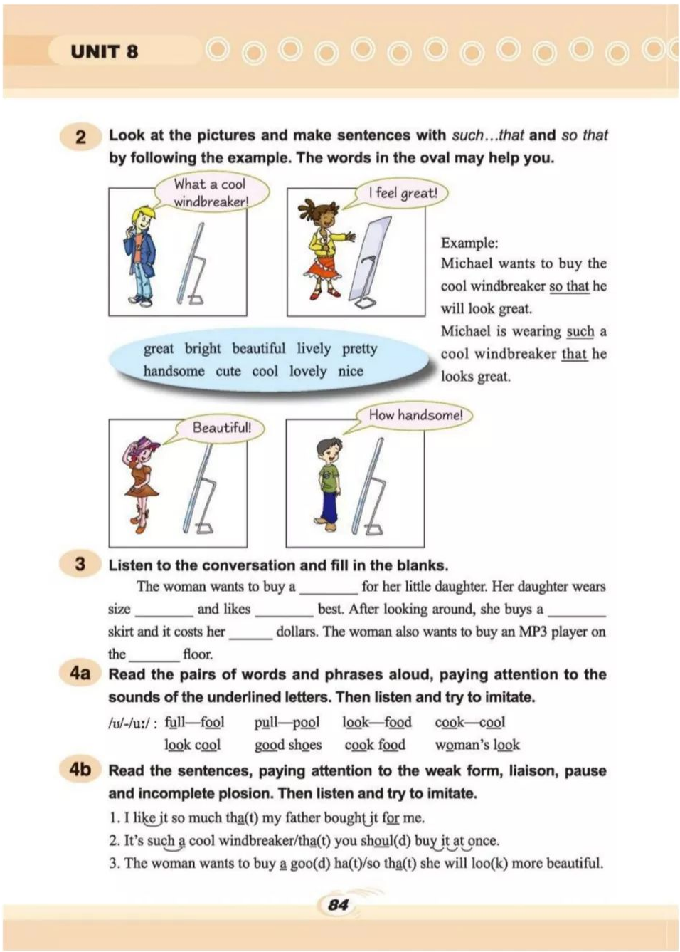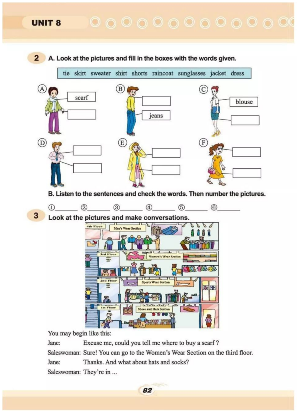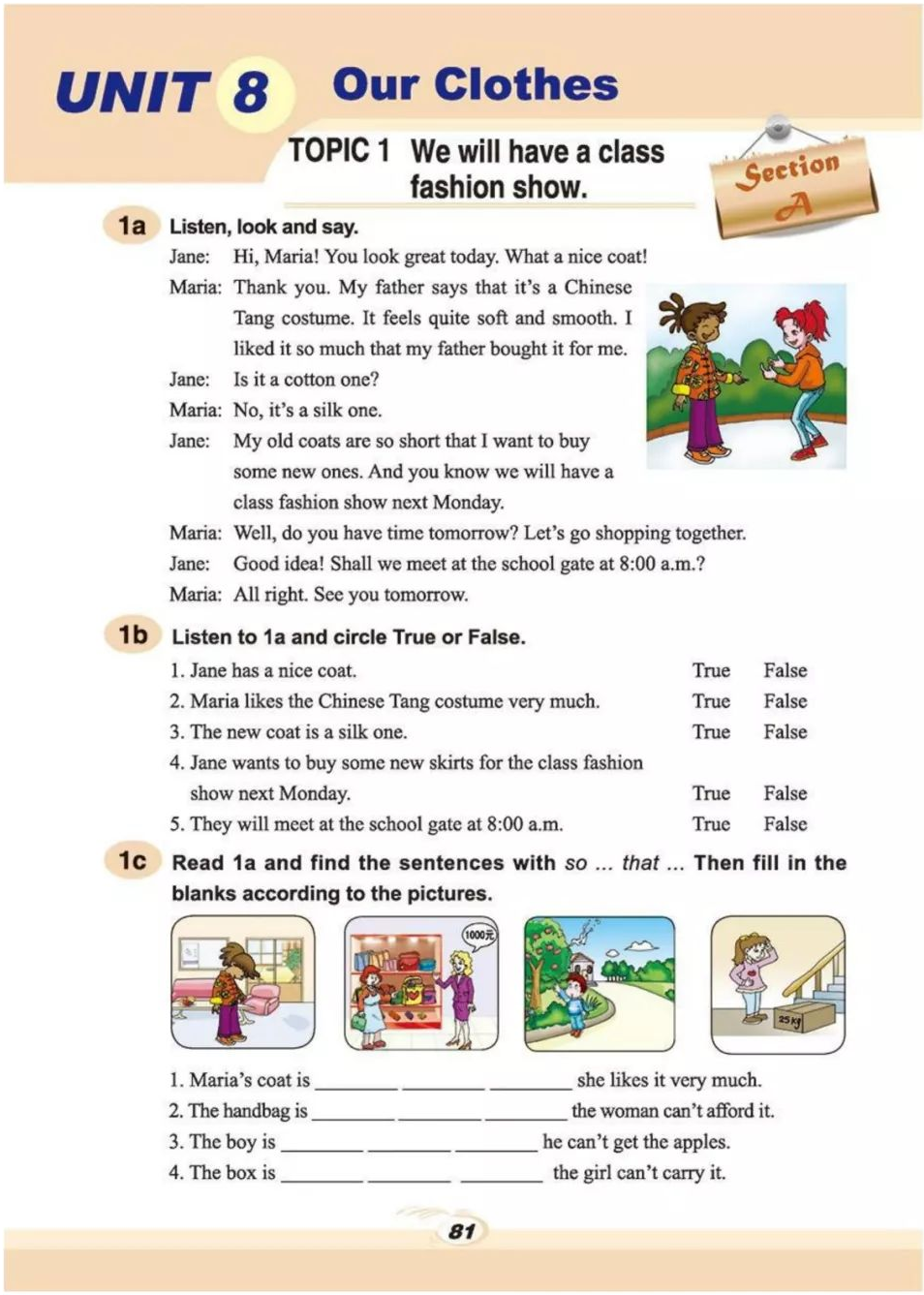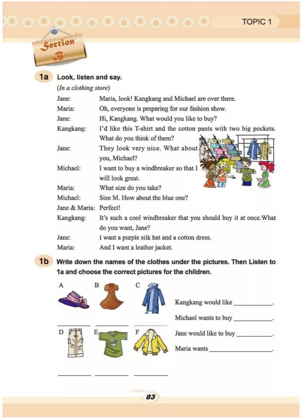 简:我的旧外套都太短了,我想买一些新的。你知道我们下周一有一场班级时装秀。