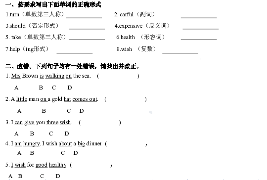 3.wish这里作为名词,意为愿望,为可数名词,根据three可知,要用复数形式。故