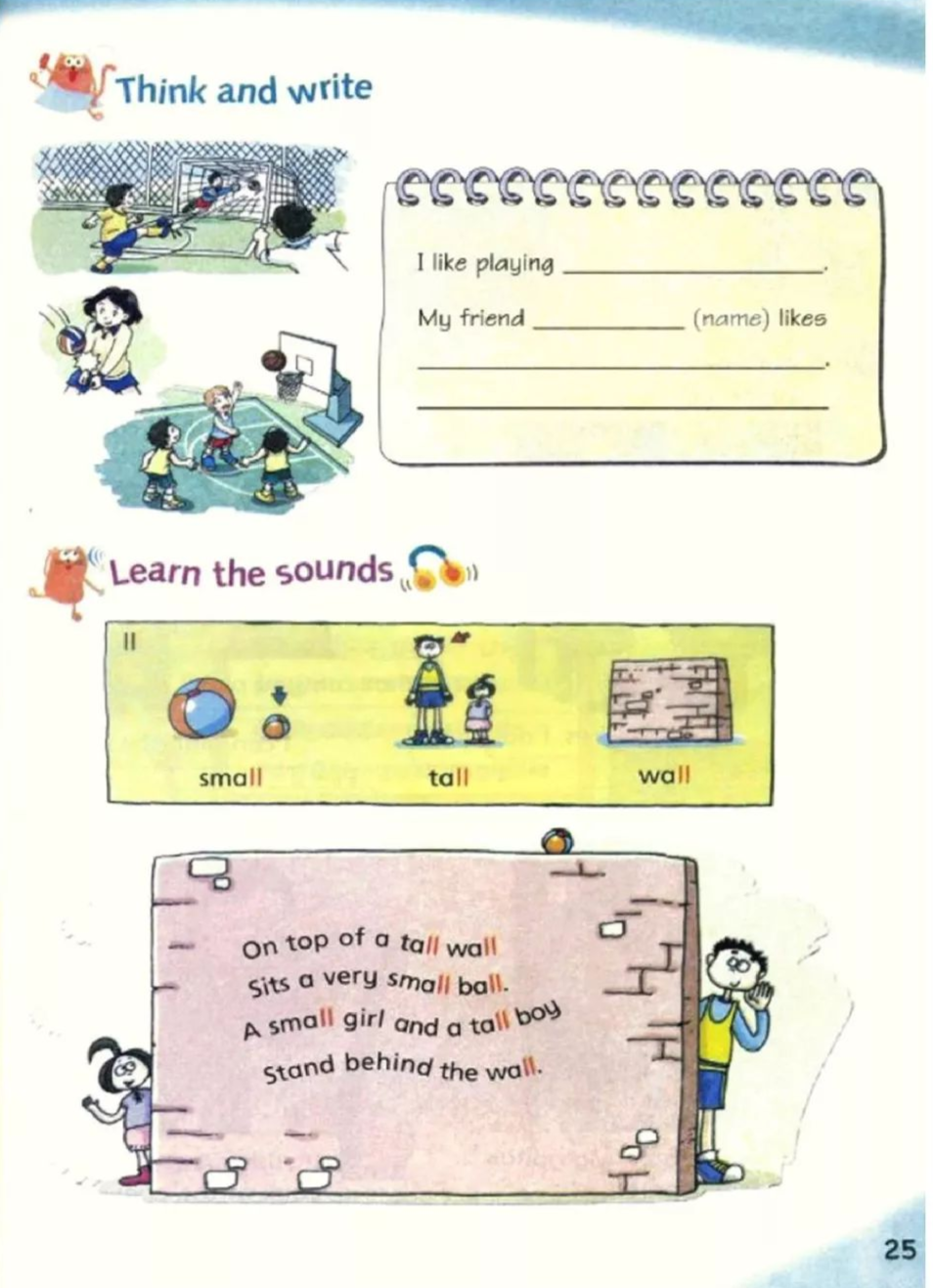 1. that is 2. playing 3. do 4. there’s 5. likes 6. we 7. small/ wall (答案不唯一)
