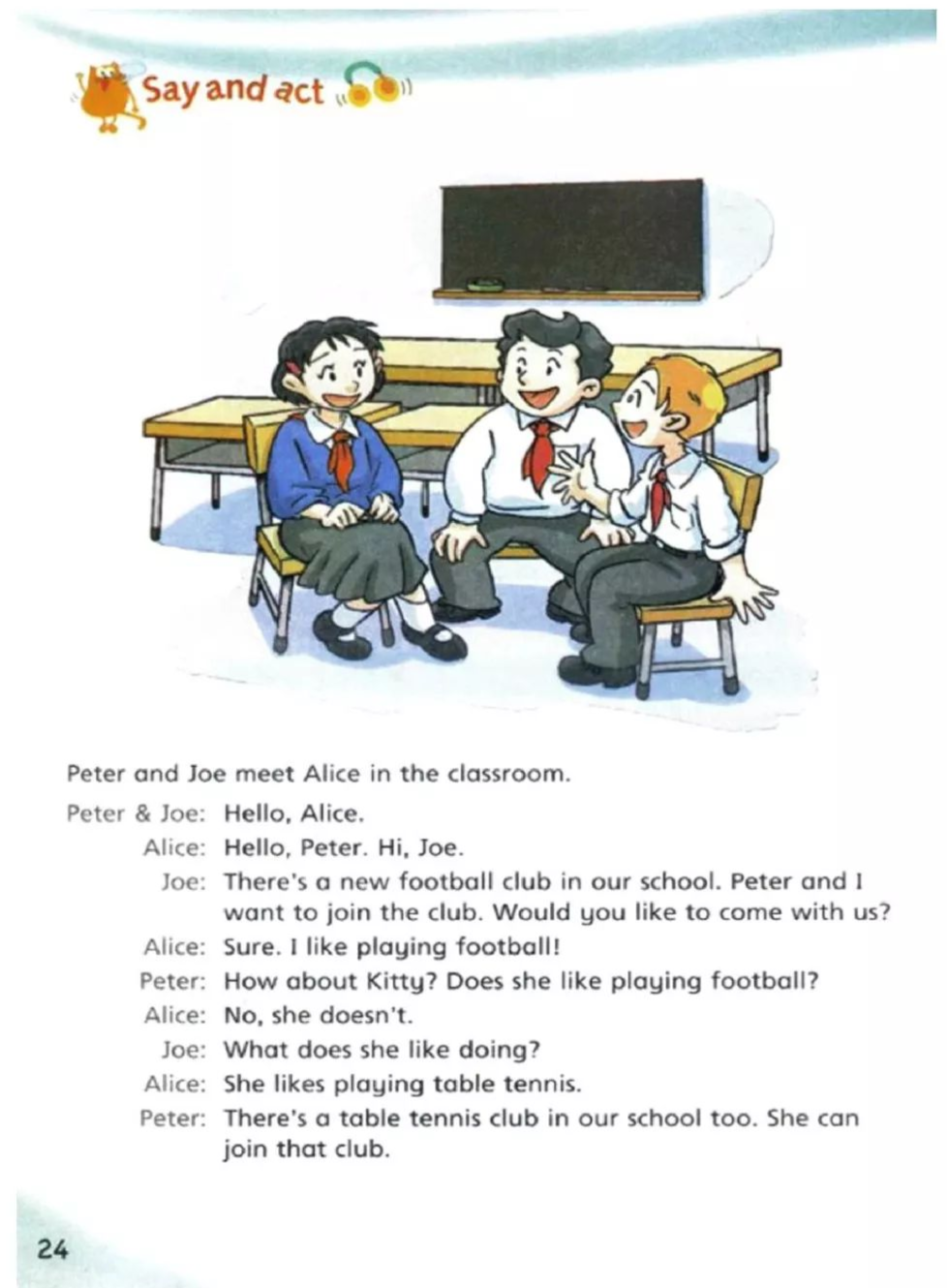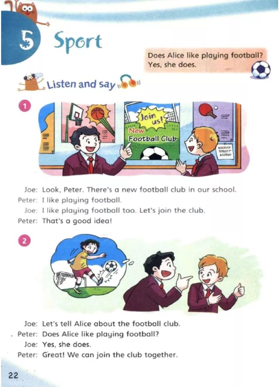 乔:看,彼得。我们学校有一个新足球俱乐部。