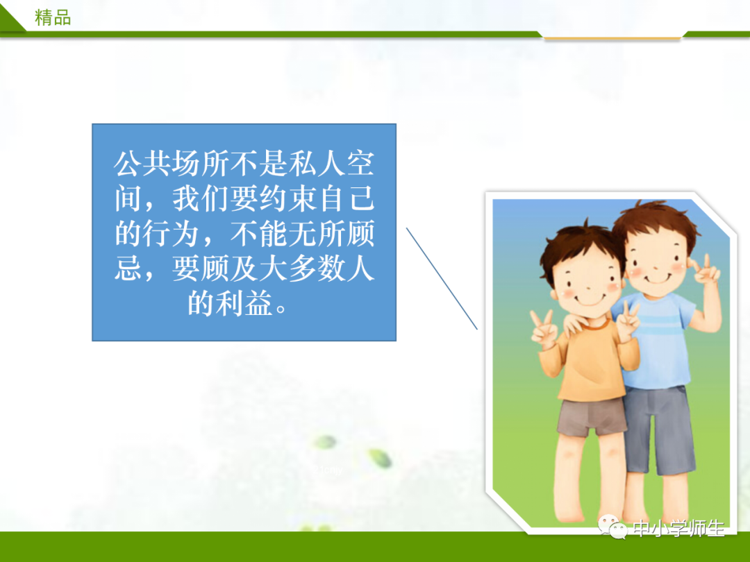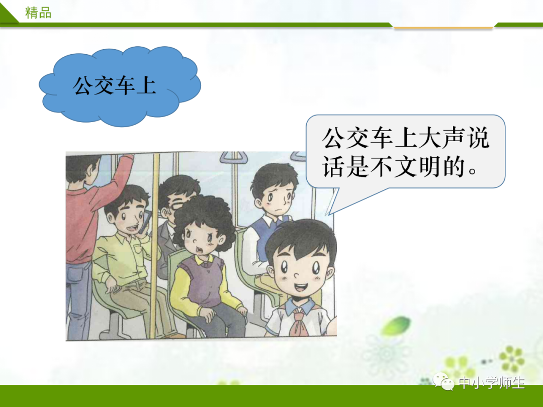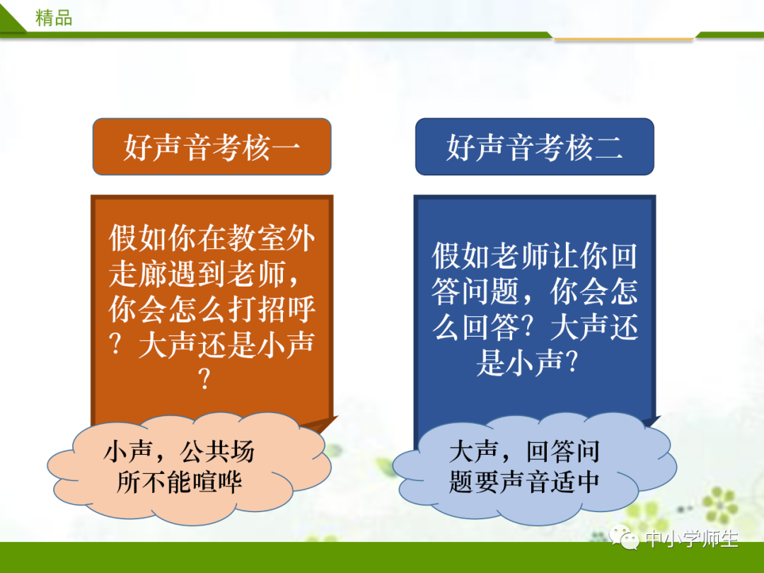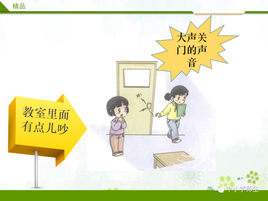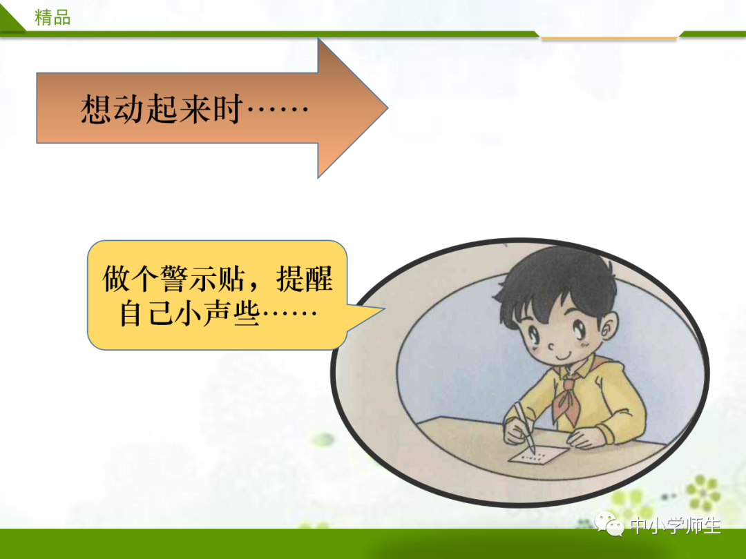 2.小结:在大家的帮助下,这些同学都改正了缺点,做到了想发言先举手,得到老师的允许后,再起立发言。不在课堂上随便说话,玩东西,搞小动作。由于他们认真听讲、遵守课堂纪律,因此受到了老师、同学的表扬、喜欢,他们的学习也有了进步,这多好啊!