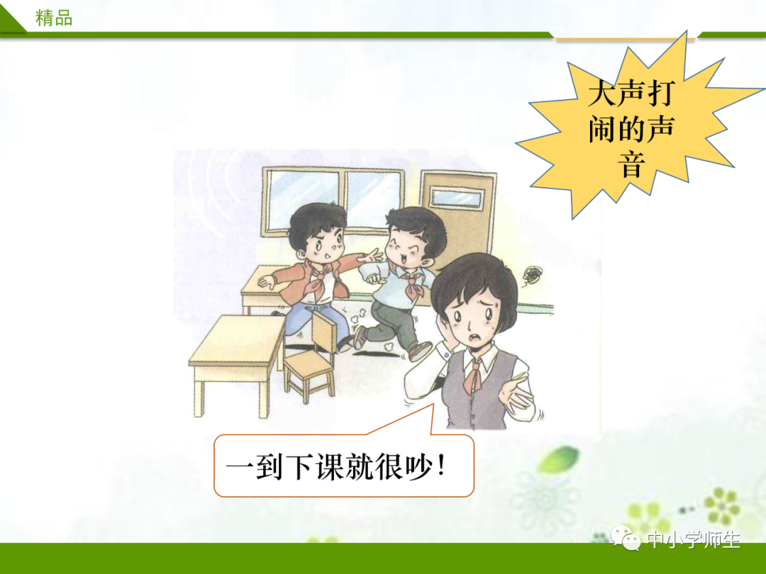 2.小结:听到上课的铃声,应该马上停止一切活动,有秩序地进教室,课间没玩儿够,还继续玩儿,会耽误准备上课用具,上课时心情不能平静下来,也上不好课。如果迟到了,还会影响老师讲课,同学听课。