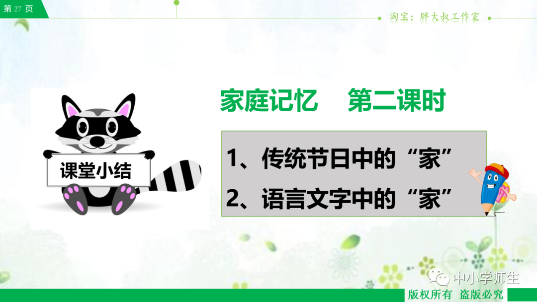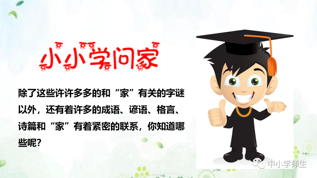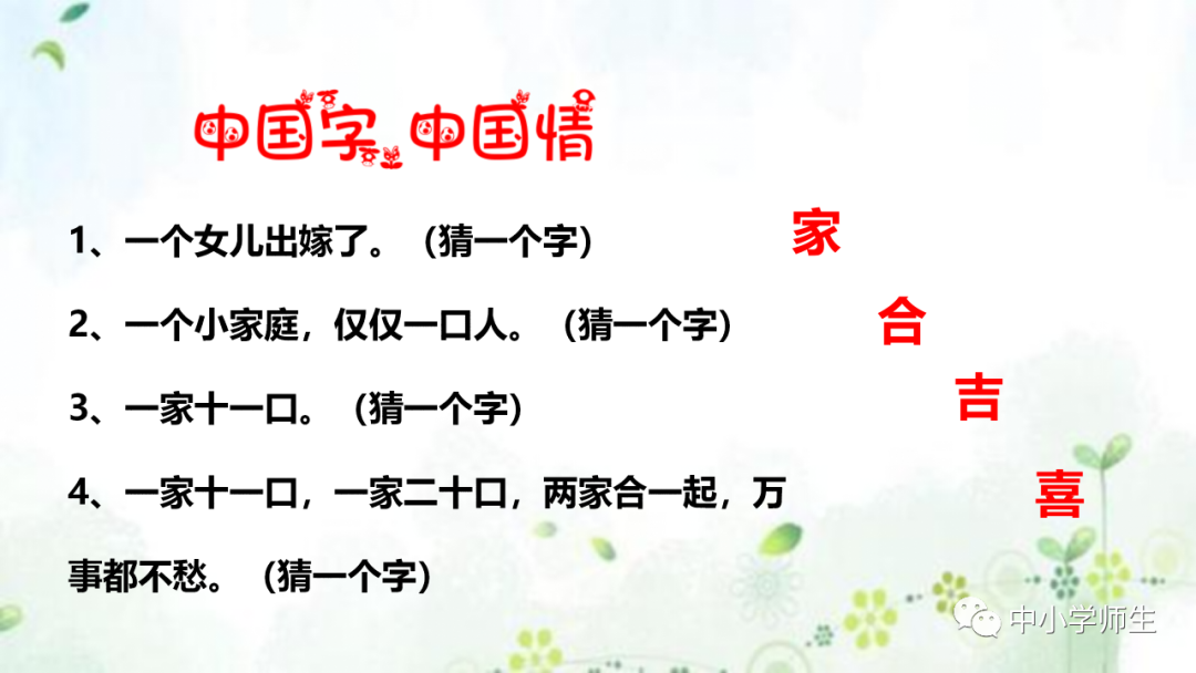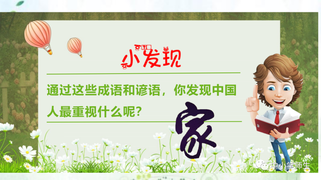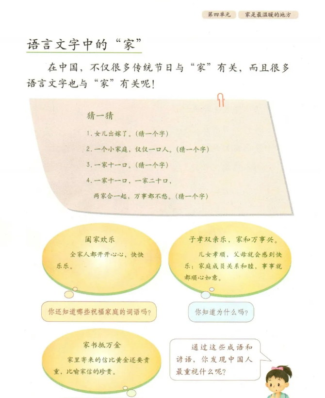 教师:在中国,不仅很多传统节日与“家”有关,而且很多语言文字也与“家”有关呢!