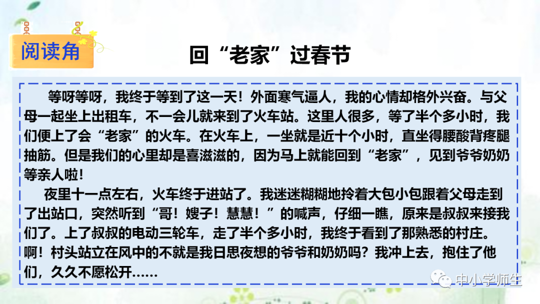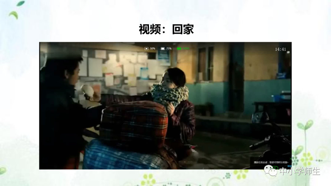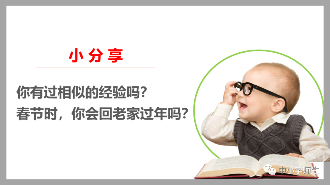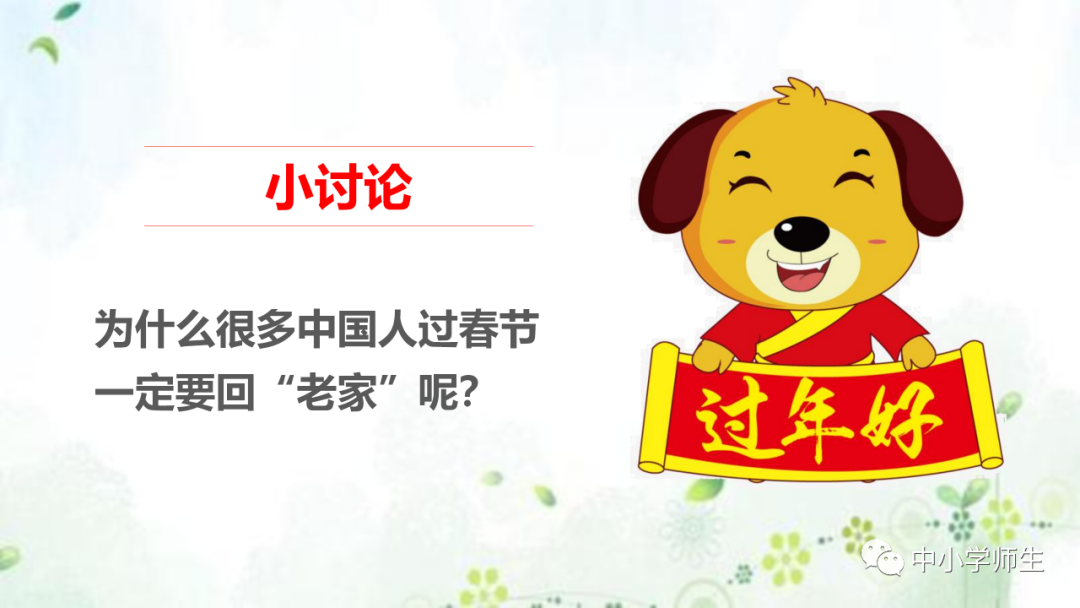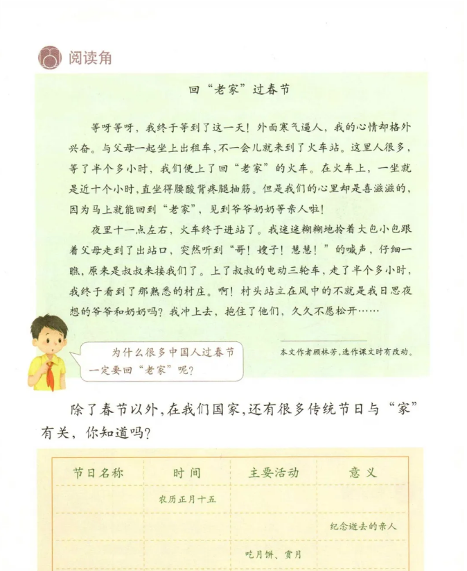 教师:打开电子教材P82页,阅读“回”老家“过春节”。为什么很多中国人过春节一定要回“老家”呢?