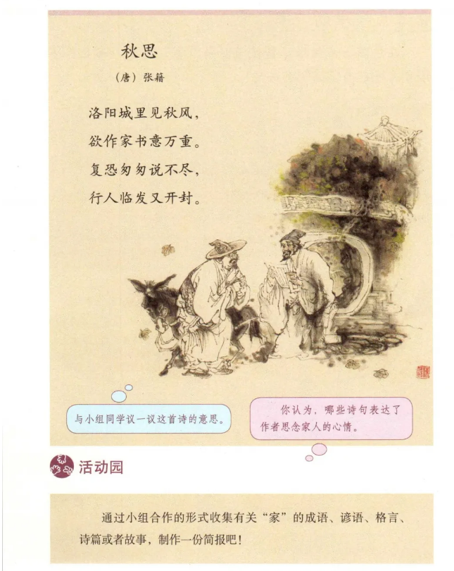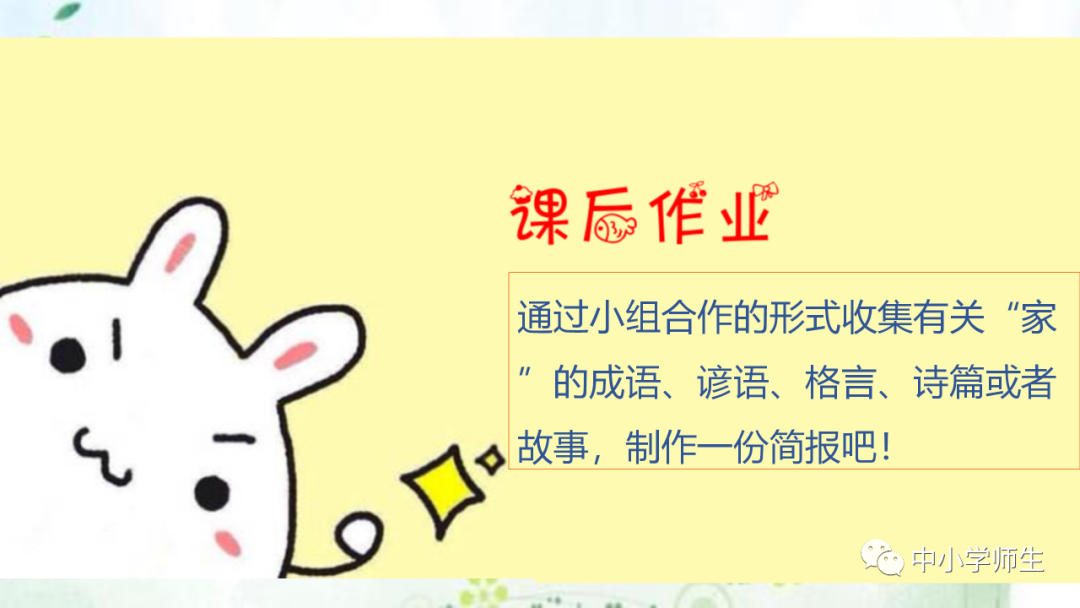 教师:通过小组合作形式收集有关“家”的成语、谚语、格言、诗篇或者故事,制作一份简报吧!