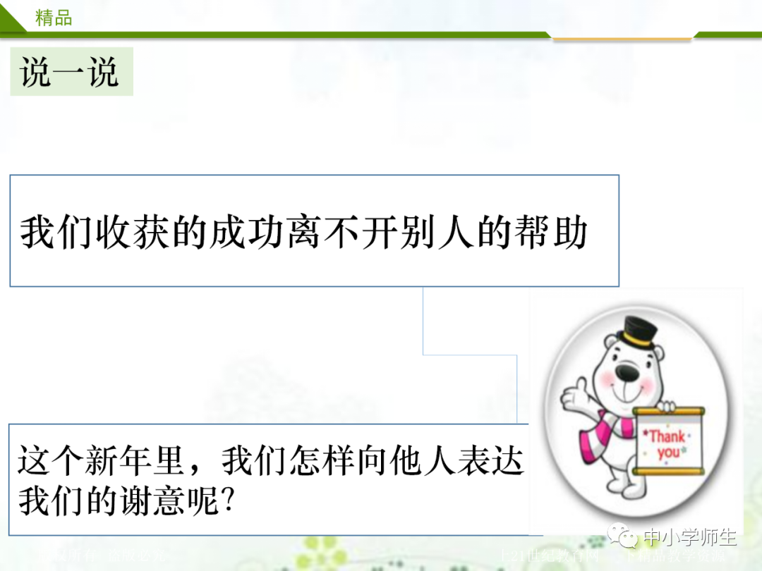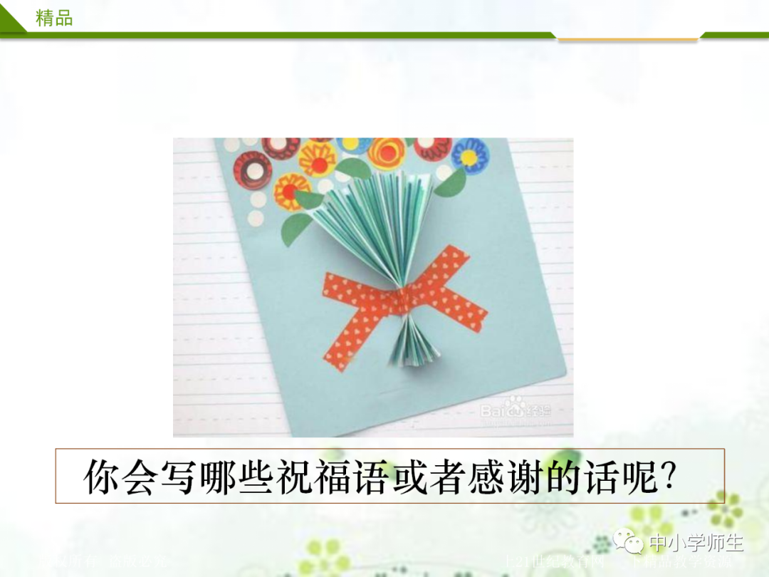 师:看来同学们都希望别人能在这张卡上写上他们送给你的希望和祝福,是吗?