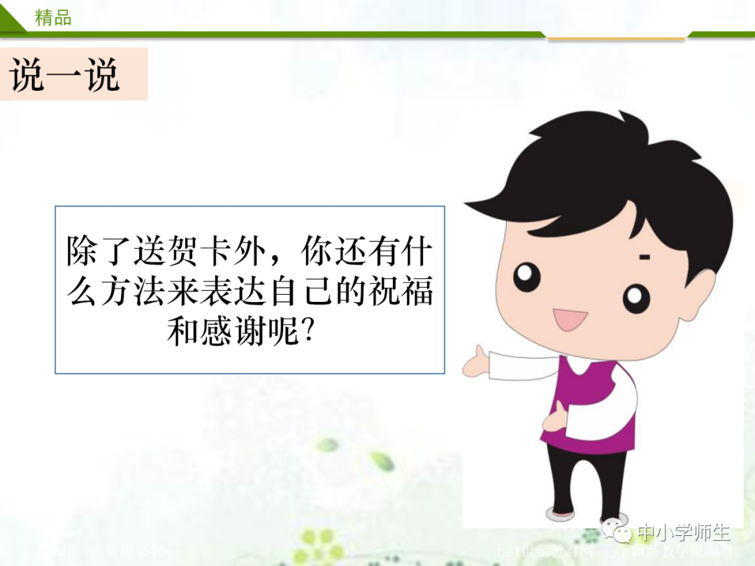 师:在这些精美的贺卡上怎么都没写字呀,那是为什么呢?