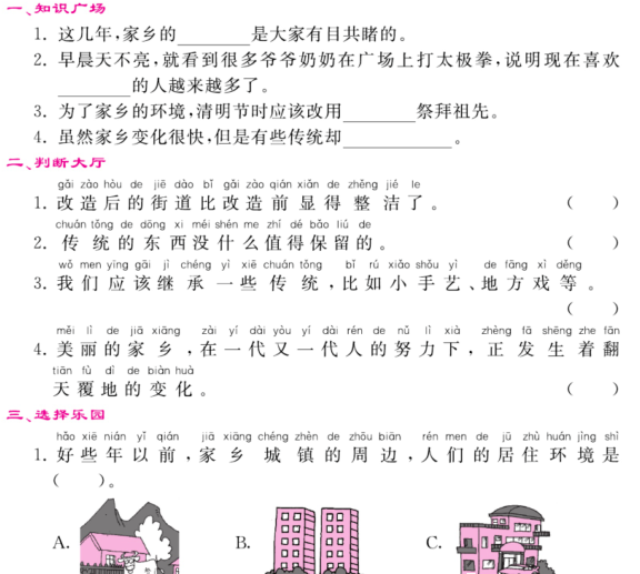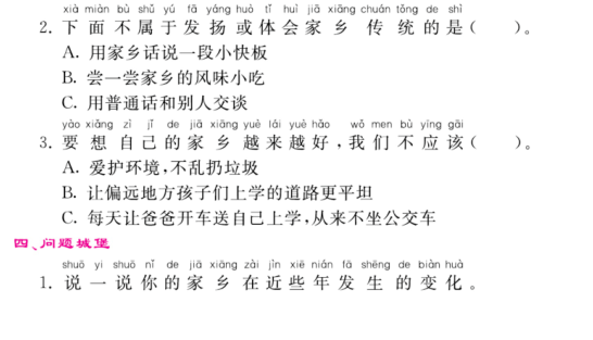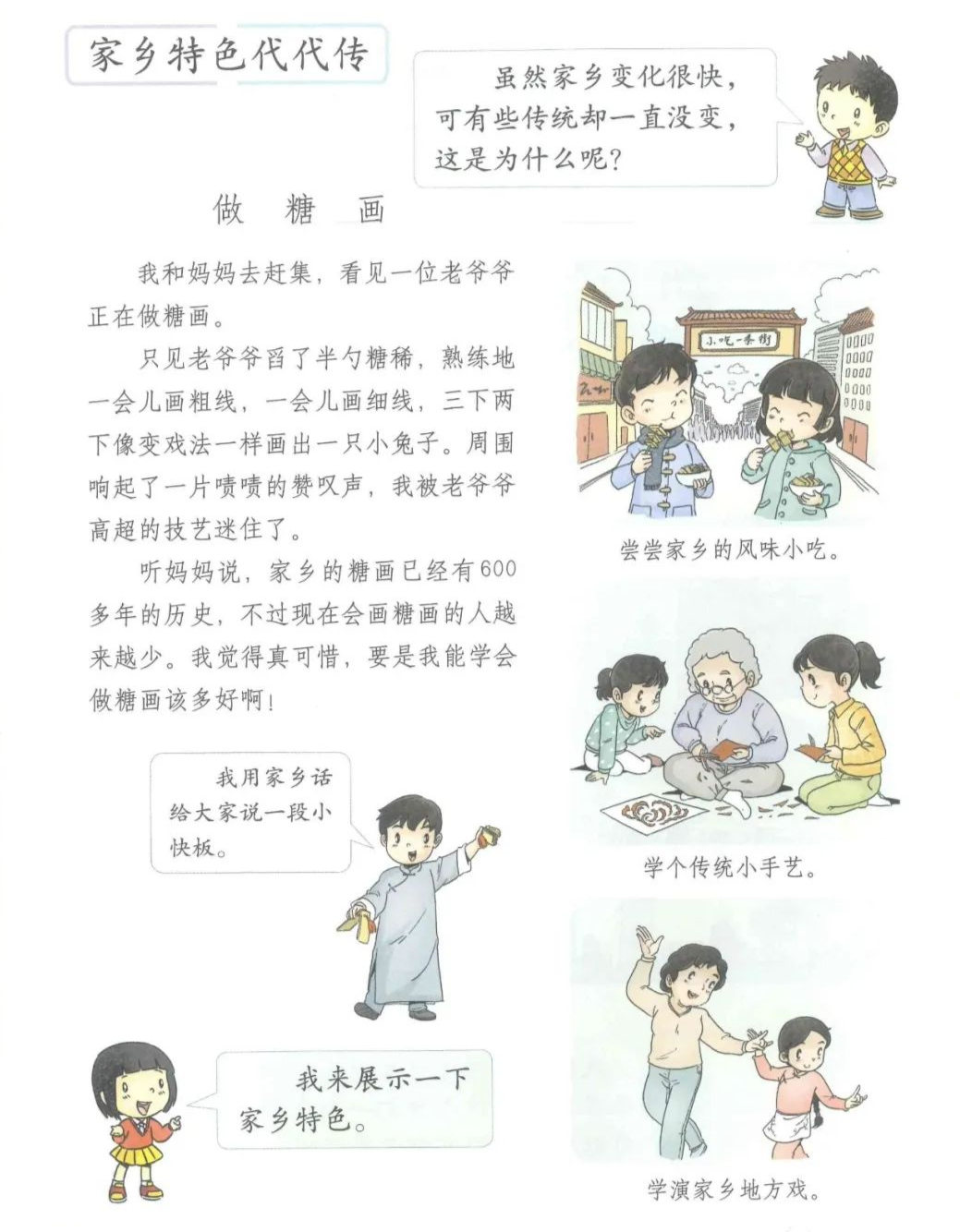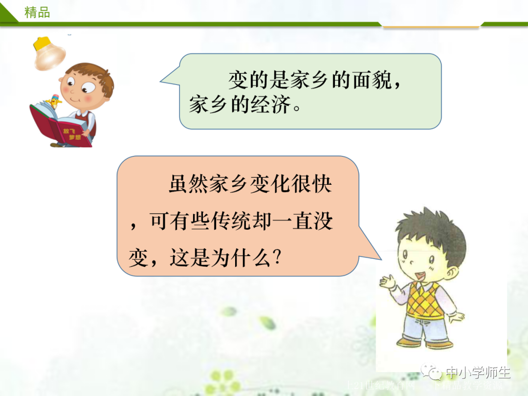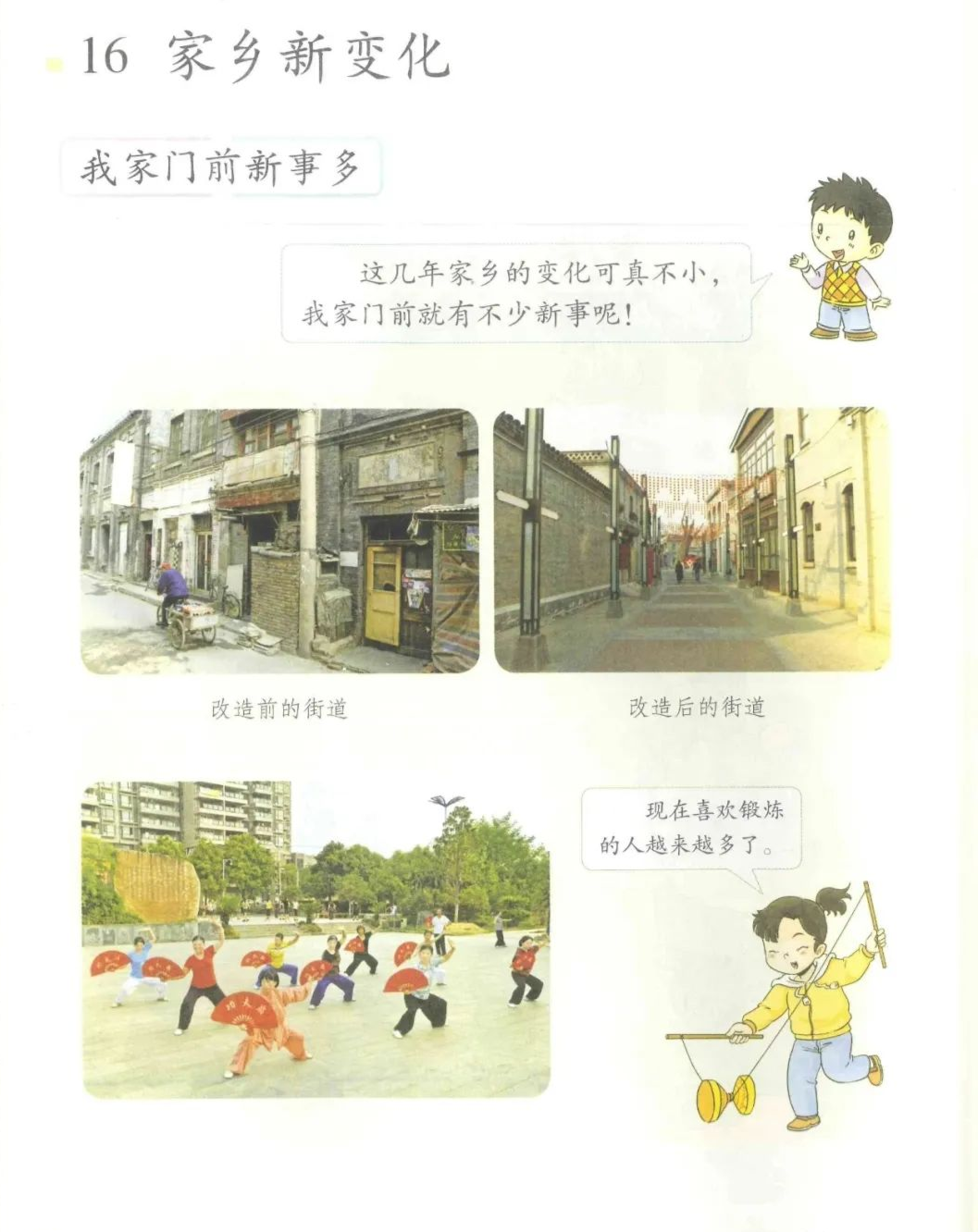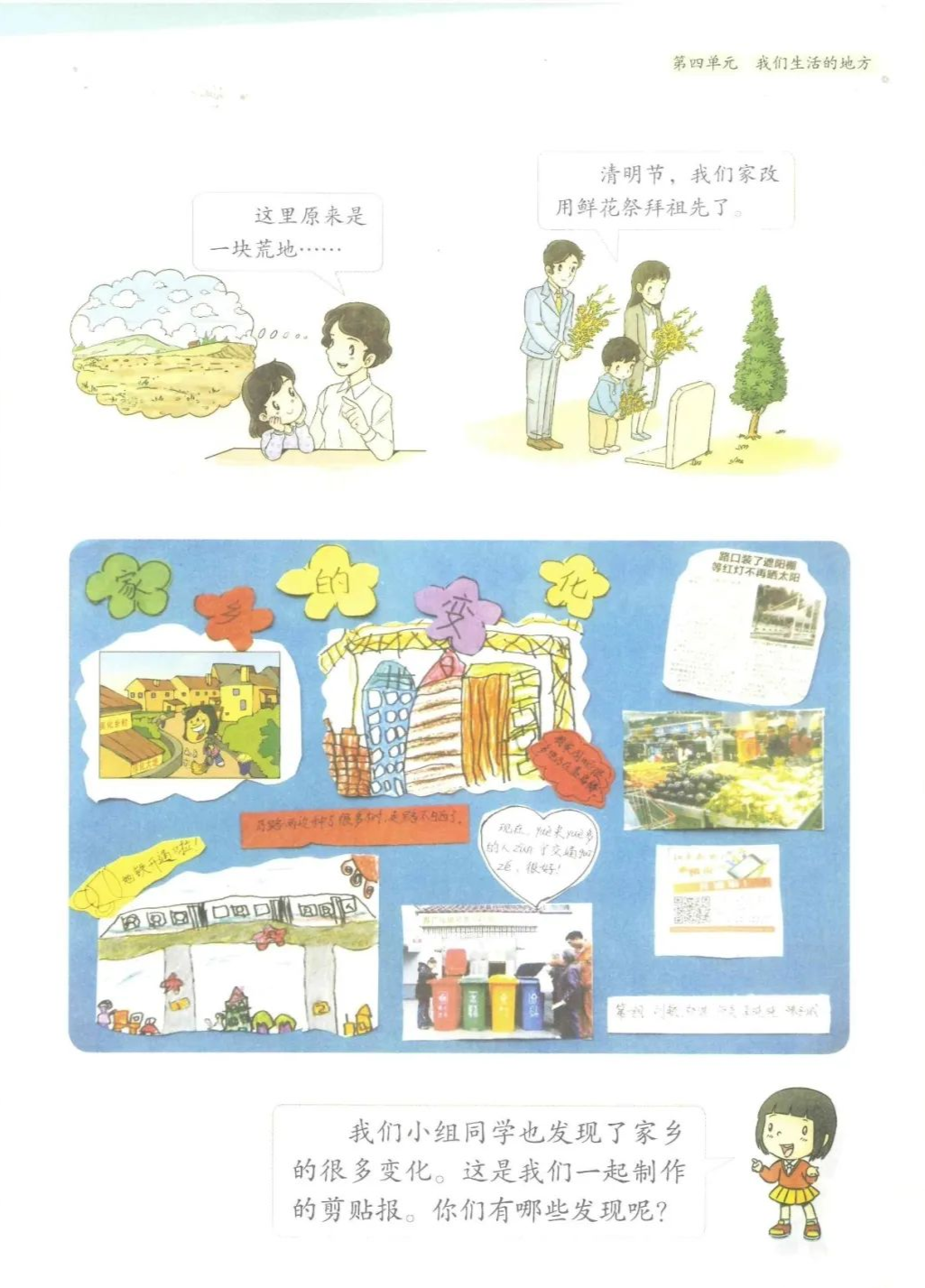 老师:家乡变化真大啊?那家乡有没有什么一直没变呢?我们一起找找吧!