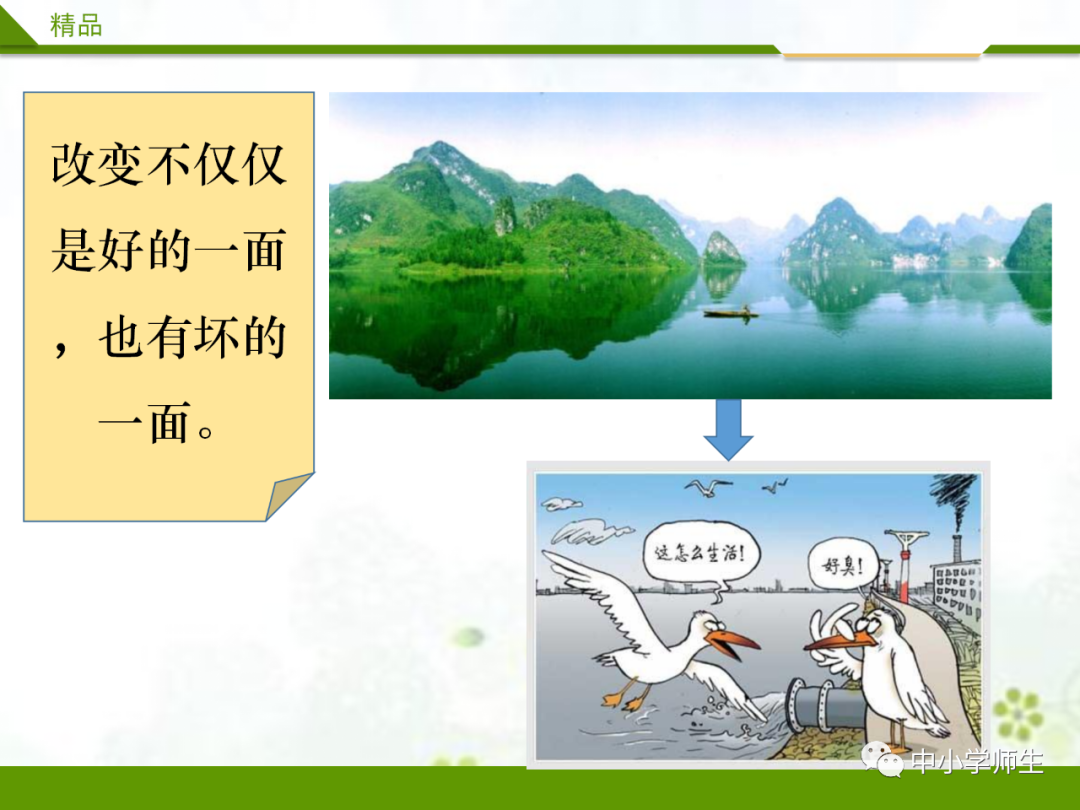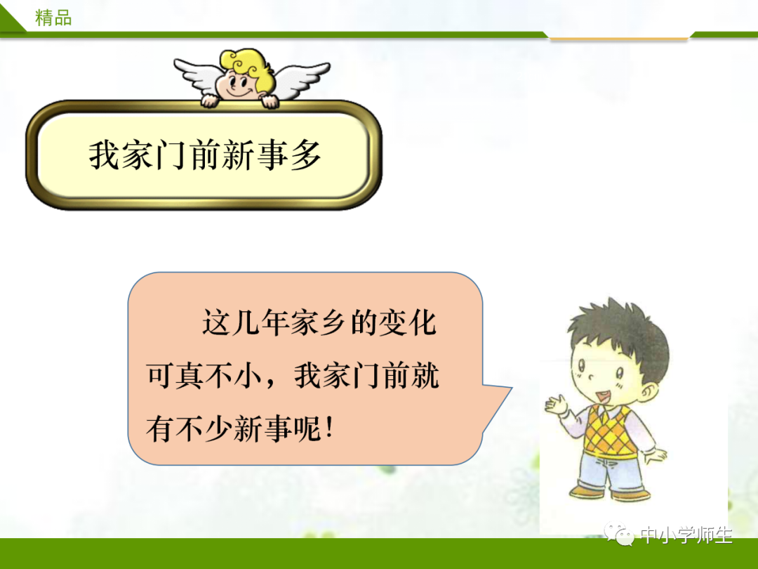 老师:从大家的发言中我们可以感受到我们的家乡正在飞速发展, 发生着翻天覆地的变化,让我们一起来关心我们家乡的变化吧!(过渡)