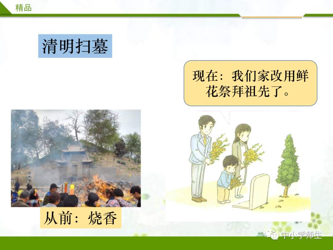 2、(清明节),我们家改用鲜花祭拜祖先了。