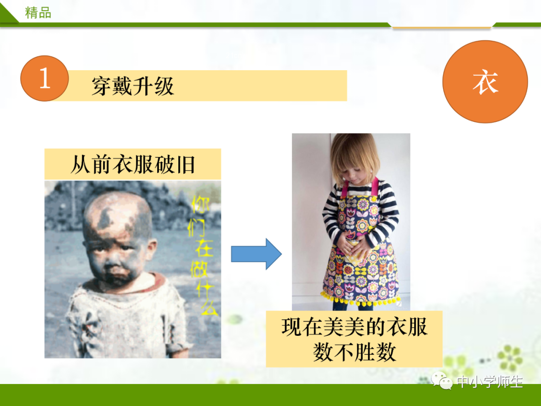 老师:同学们调查的还挺广泛, 涉及了住房、 生活环境、 精神面貌、 菜市场、 衣着、家庭经济收入、家用电器等方面的变化,那大家对自己调查的结果最大的感受是什么呢?