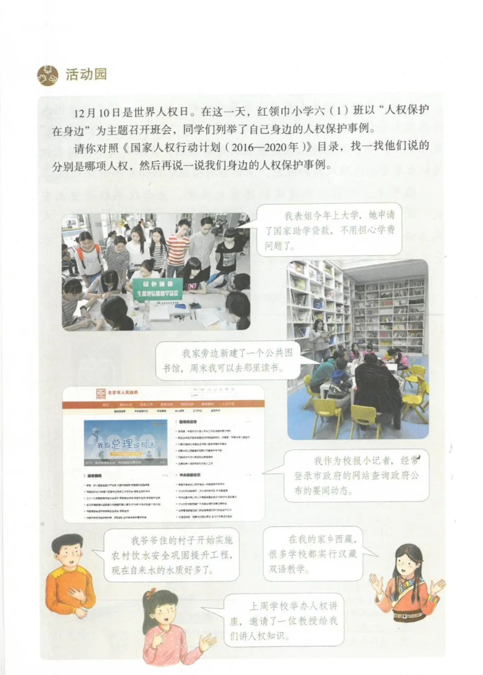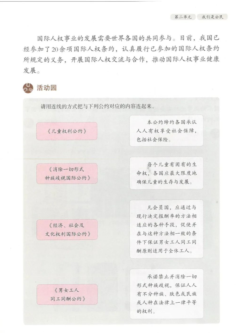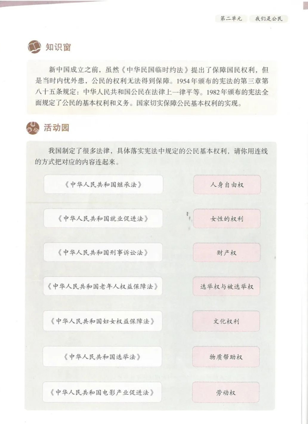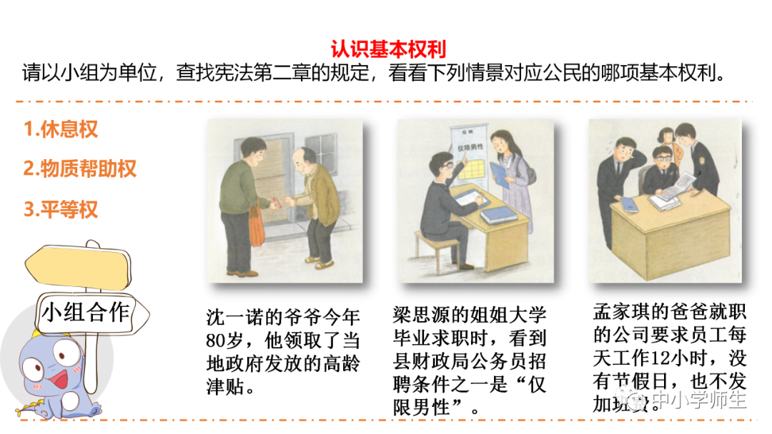 四、连线:权利:领取高龄补贴 人身自由 参加选举受教育