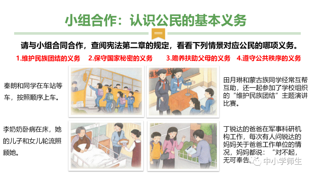 2、总结维权的原因、途径,及公民基本权利和义务,遵守的原则。给学生一个清晰的知识体系。