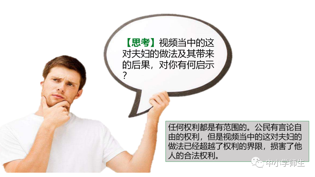 4、学生发表对上述视频材料,生活中的现象,根据知识理论进行分析,老师明确观点。