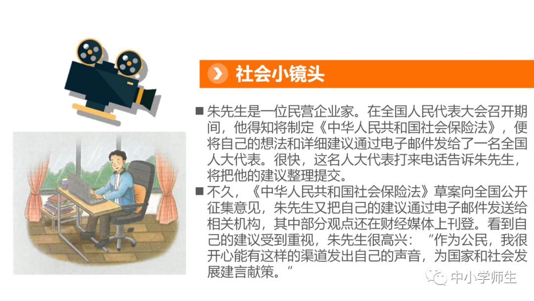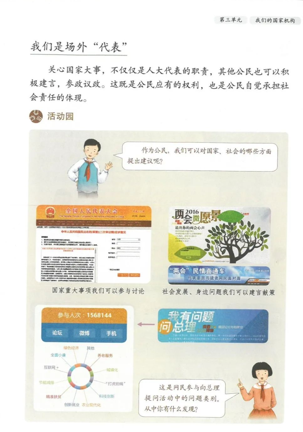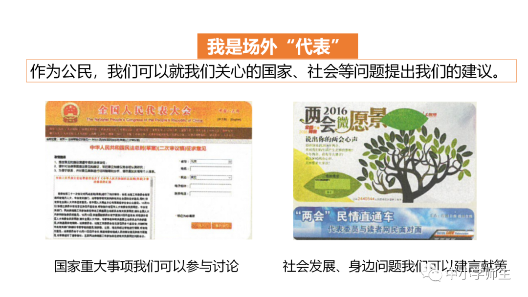 教师提问:大家结合教材想一想人民代表大会和人民之间的关系还体现在哪一方面?