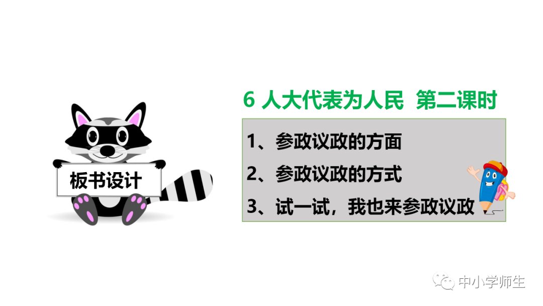 3.认同人民代表大会制度是适合中国国情的好制度,坚定热爱社会主义政治制度的信念。