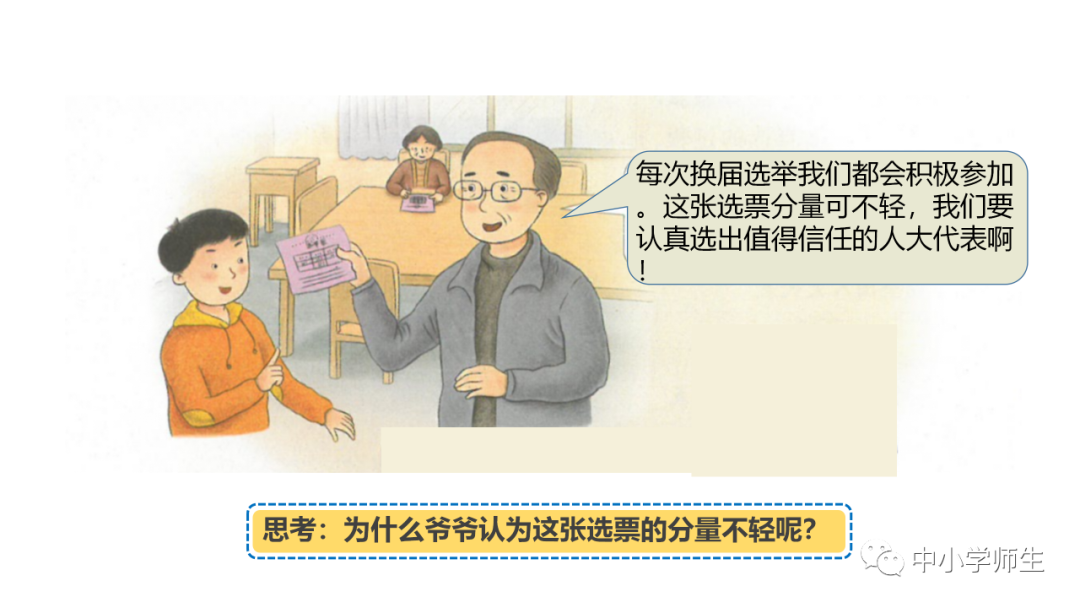 教师最后总结:从我国的国家权力机关与人民群众的关系看,我国的权力机关是民主选举产生的,代表人民统一行使国家权力。因此,它要对人民负责,受人民监督。这表明,我国的国家权力机关具有广泛的民主基础,充分说明了我国的国家权力来源于人民,是各级人民大表大会真正代表人民利益的重要保证。