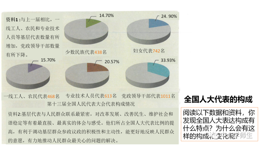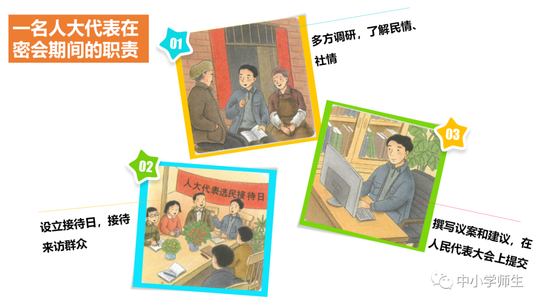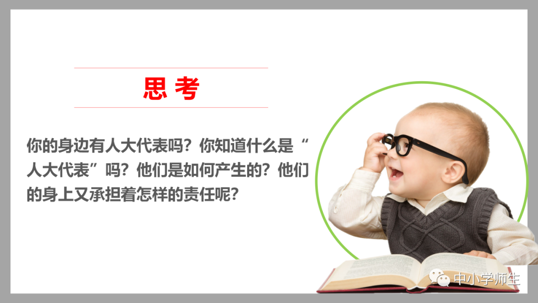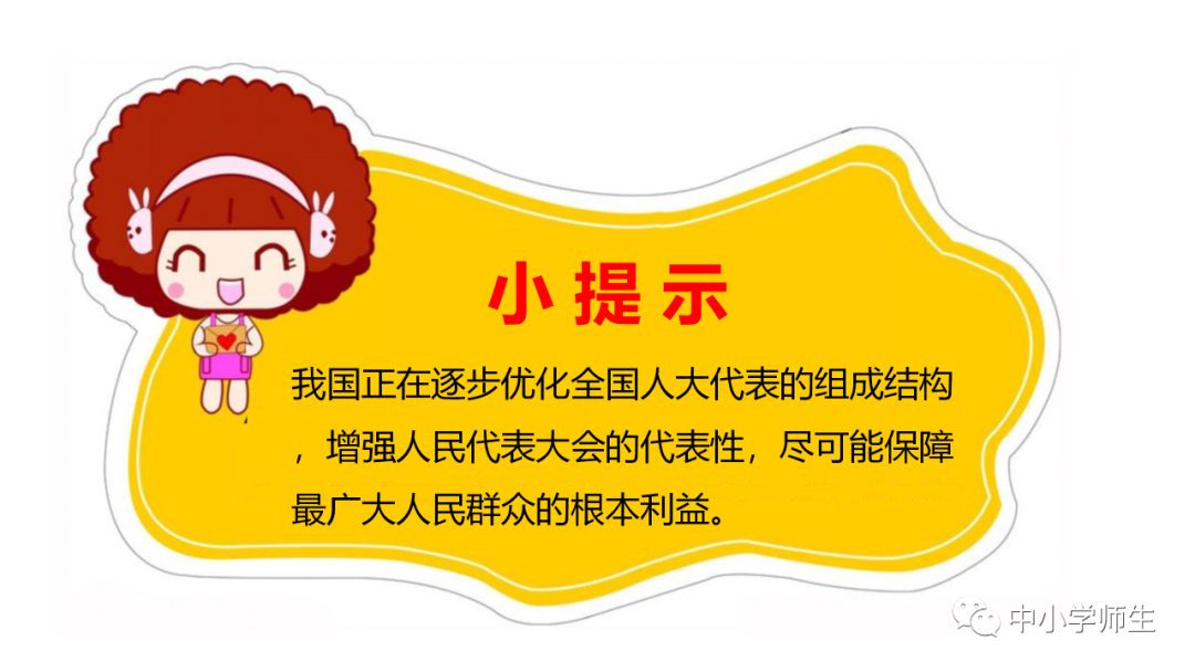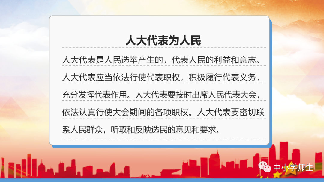教师总结:人民代表大会的代表由民主选举产生,对人民负责,受人民监督。