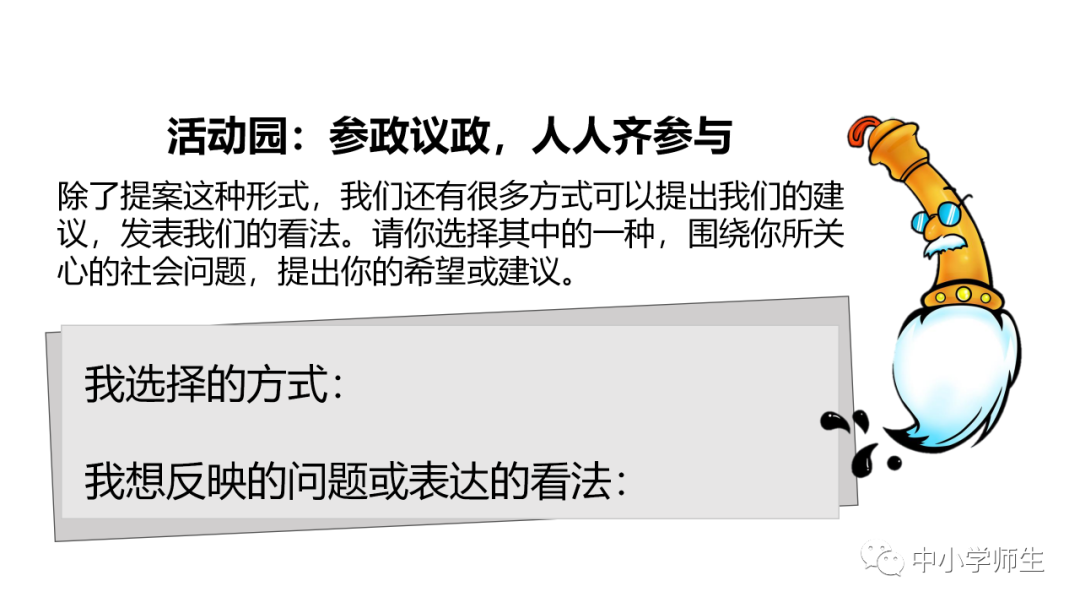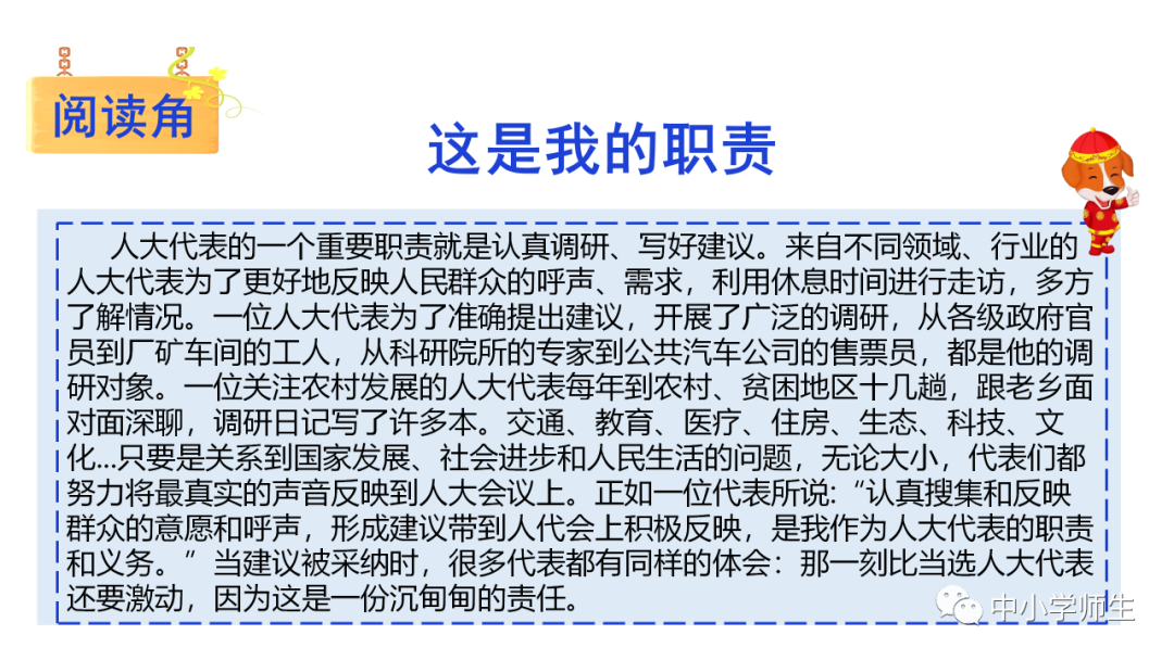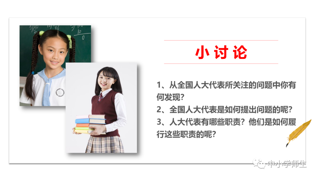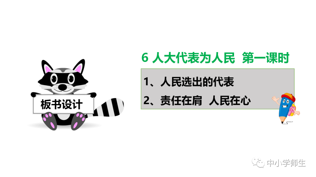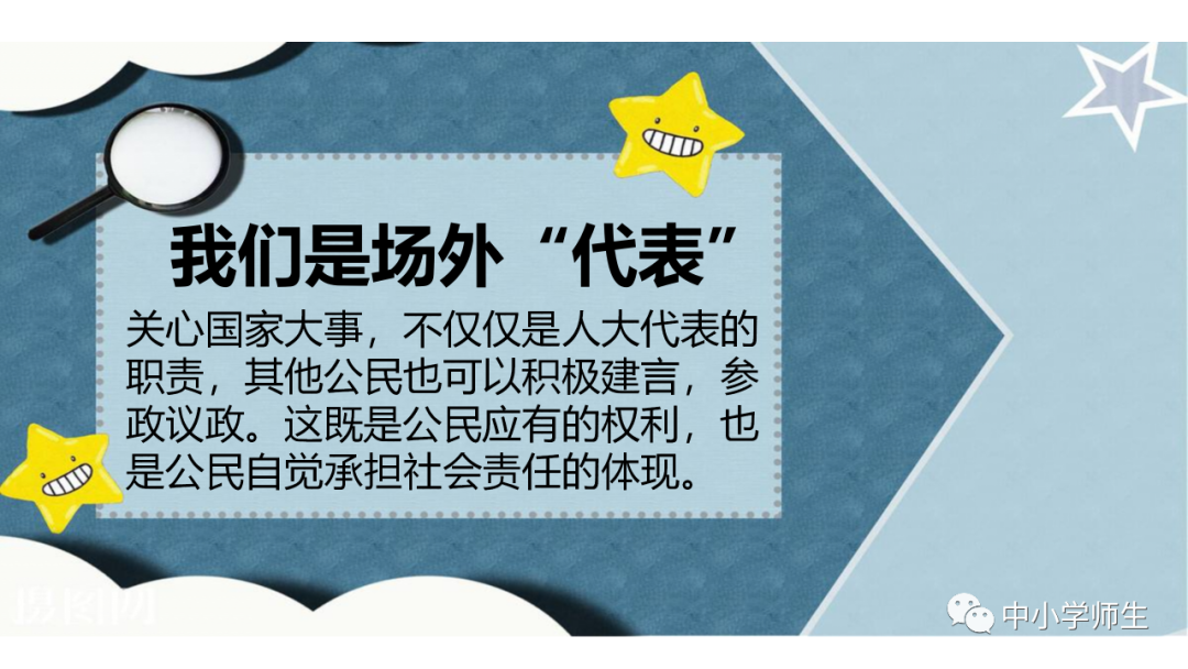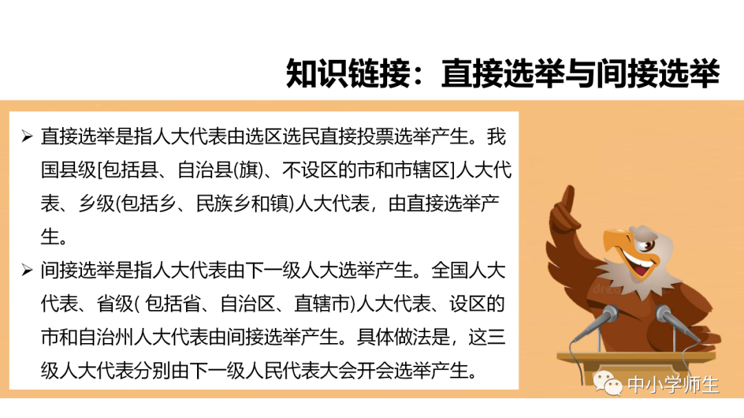 教师总结:人民代表大会的代表由民主选举产生,对人民负责,受人民监督。