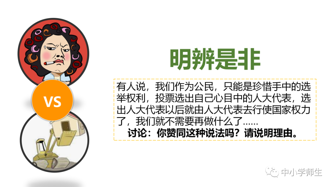 教师最后总结:对违反人民意志、损害人民利益的不称职的代表,人民有权依照法律程序予以罢免。