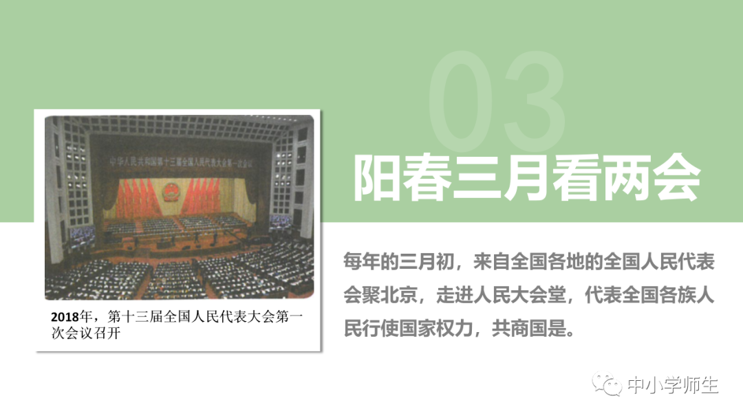 16.每年的(三月初),来自全国各地的全国人大代表会聚(北京),走进(人民大会堂),代表全国各族人民行使国家权力,共商国是。