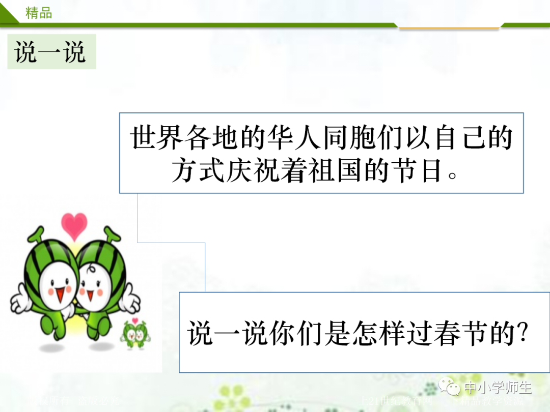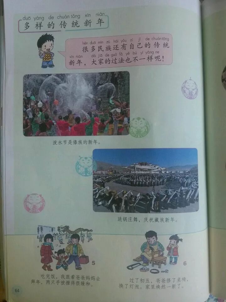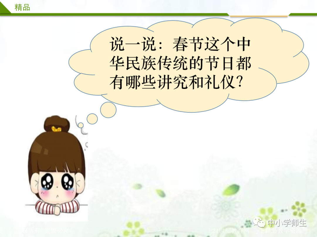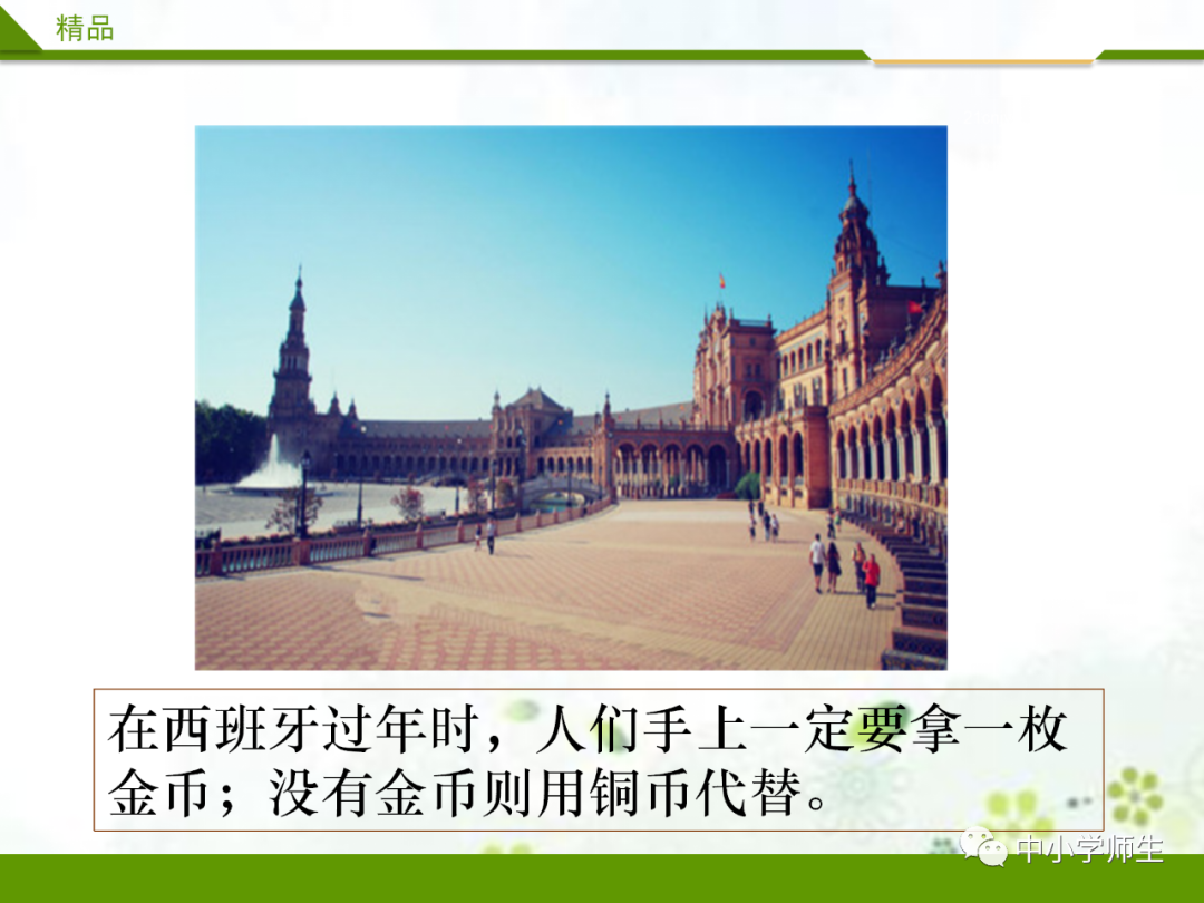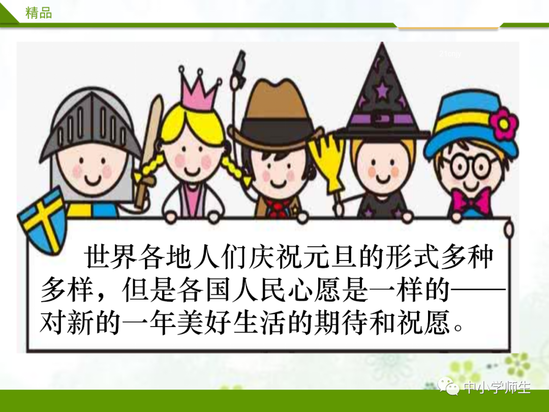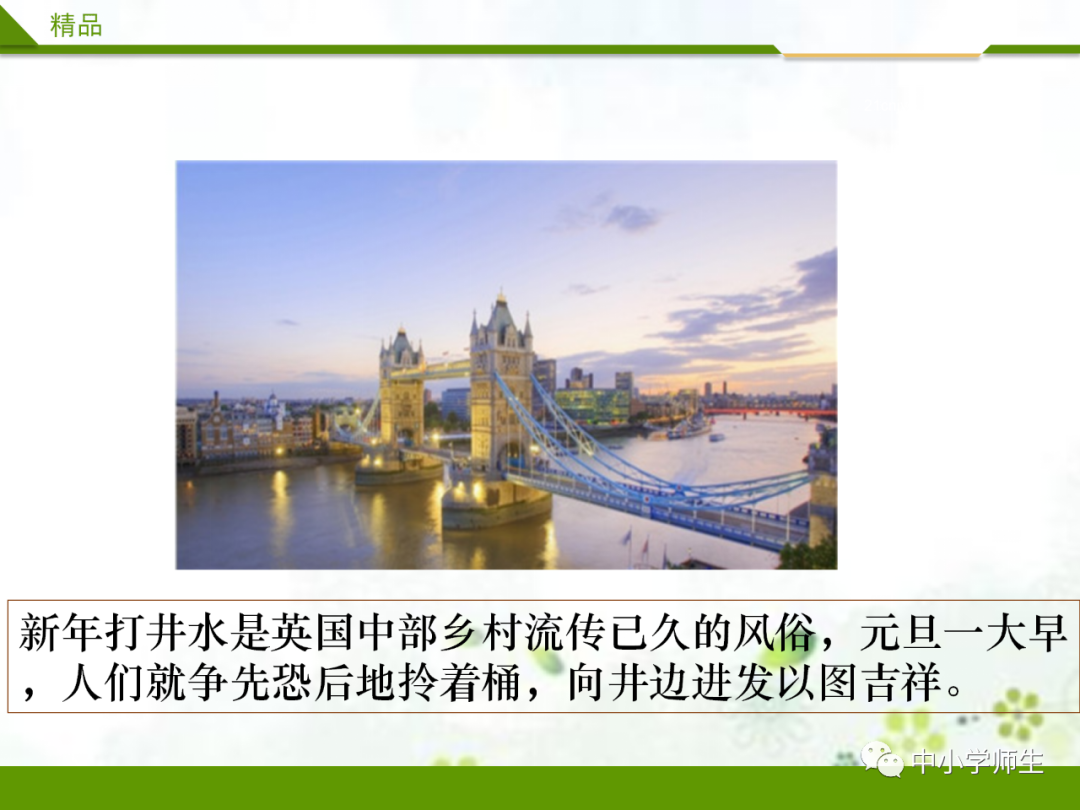 1师:春节是中国人的传统节日,是按照传统的农历的正月初一为新一年的开始,别的民族、别的国家也有自己传统的新年,你能说出一两个吗?