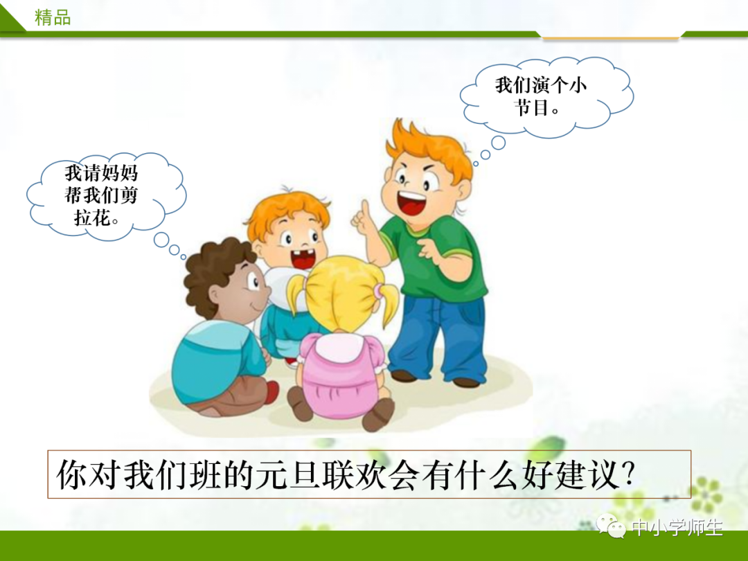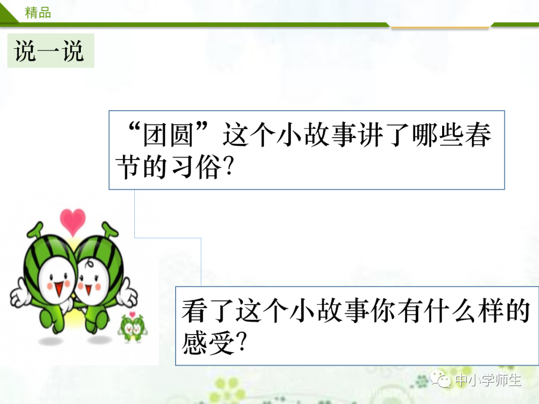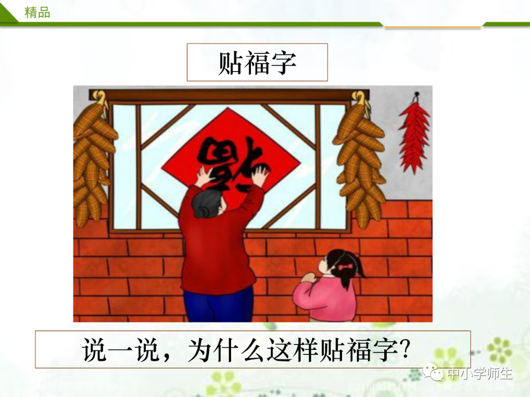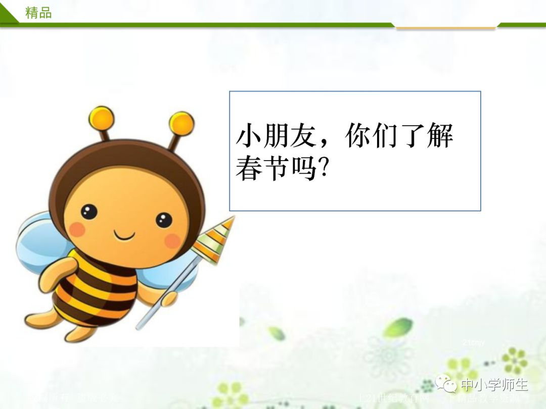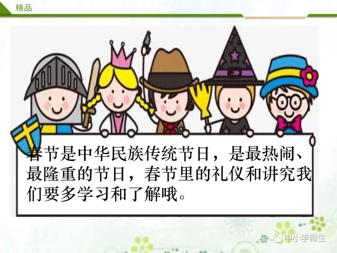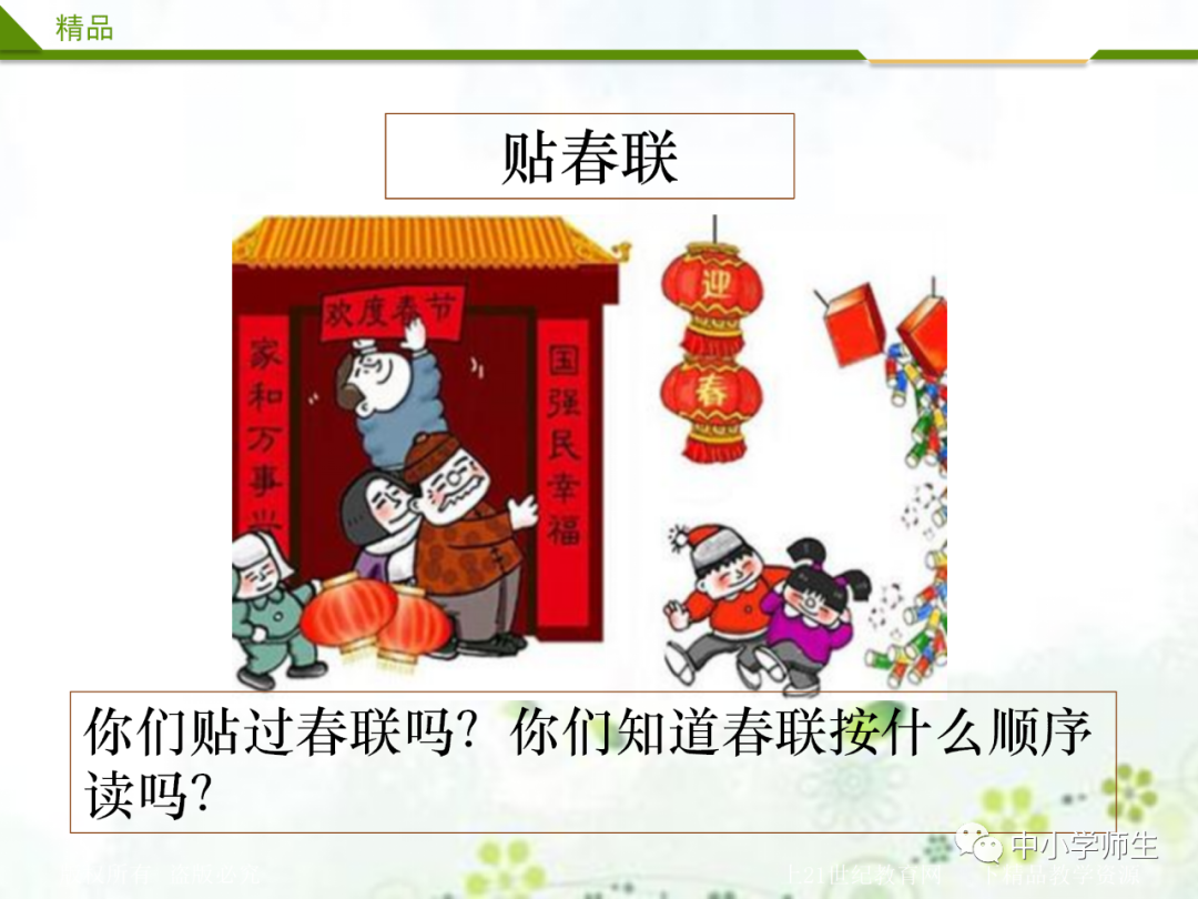 1师:春节是中国人的传统节日,是按照传统的农历的正月初一为新一年的开始,别的民族、别的国家也有自己传统的新年,你能说出一两个吗?