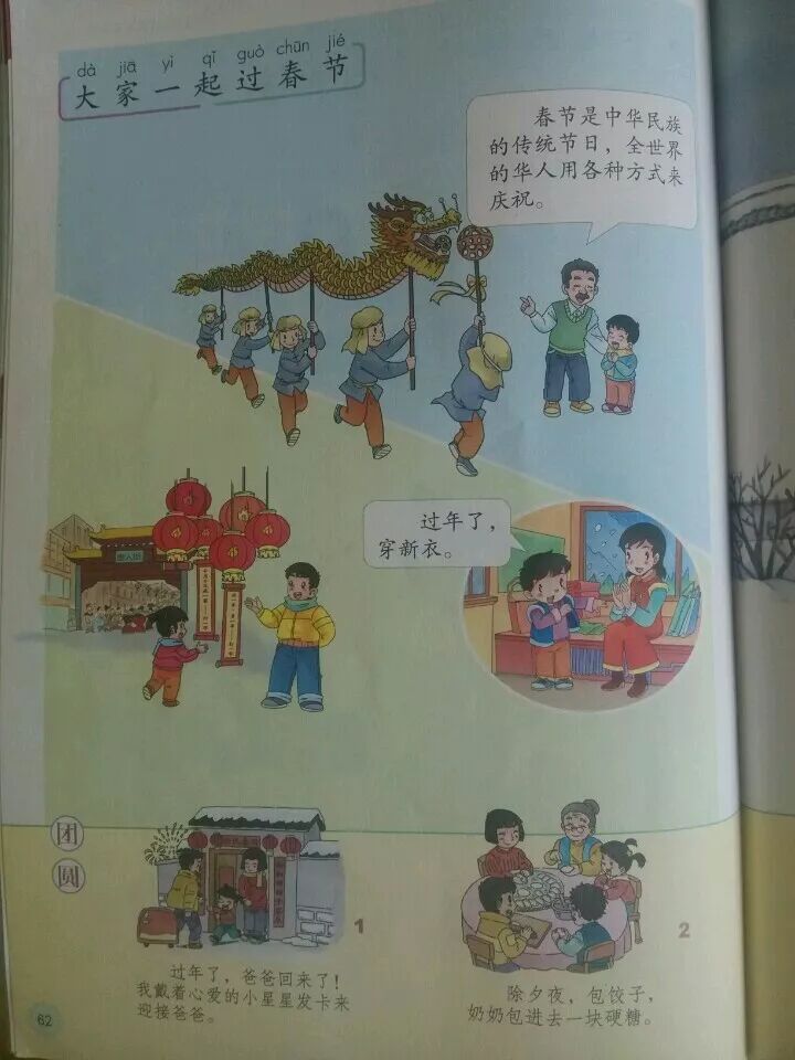1体会我国传统的春节活动的热闹氛围,感受人们对美好生活的热烈向往。