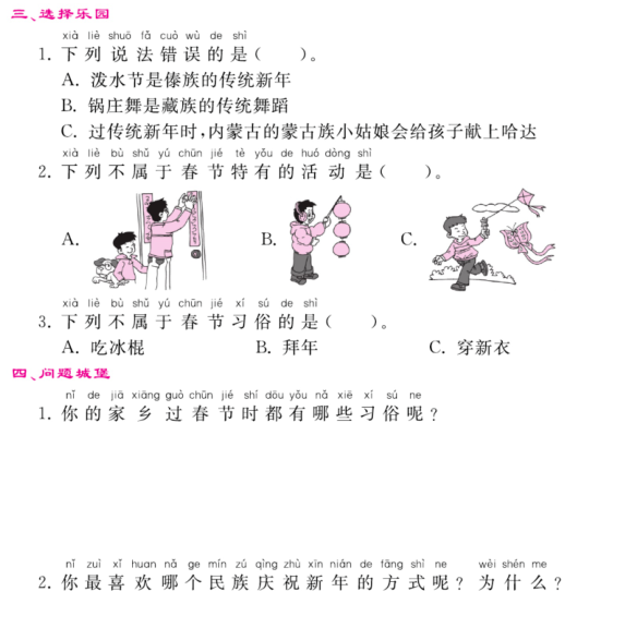 过春节时,你还参加过什么有意思的活动?(逛庙会)