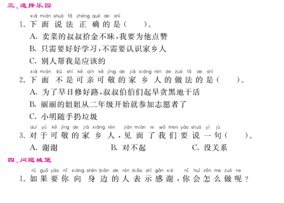 1、说一说:我们应该做怎样的家乡人?