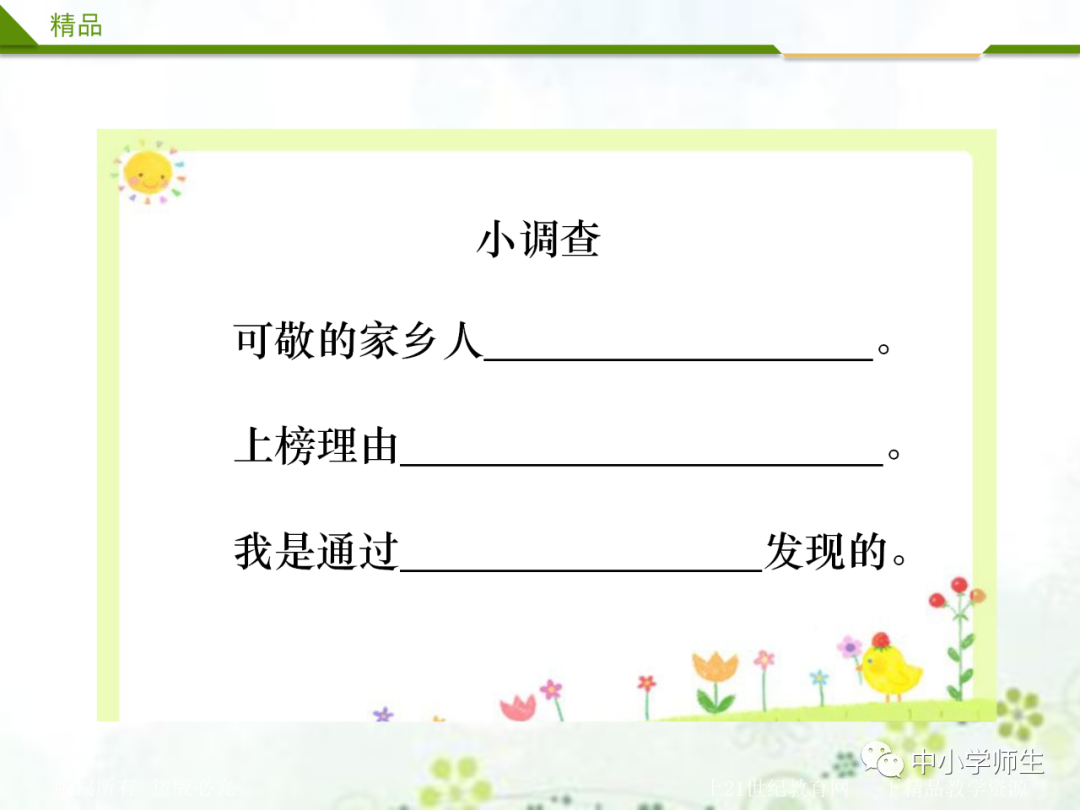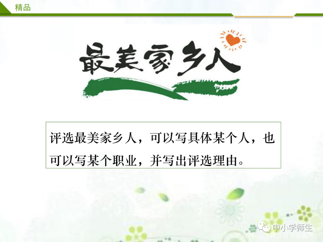 1、家乡景美、物美,家乡的人更美。你能向大家介绍一位可爱的家乡人吗?