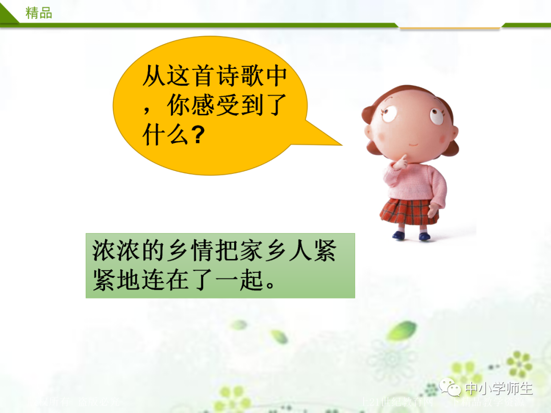 3、欣赏、诵读古诗《回乡偶书》,理解家乡人浓浓的家乡之情。