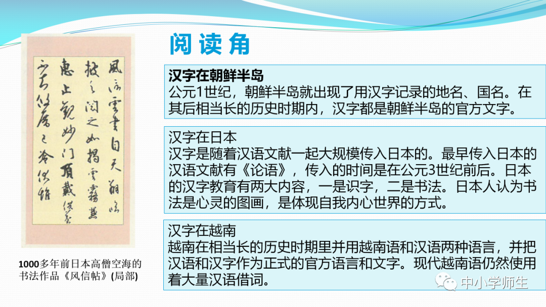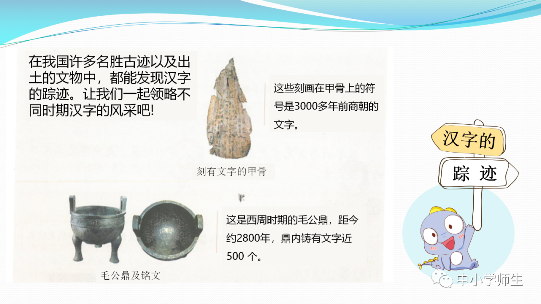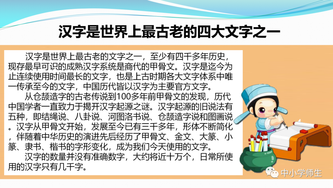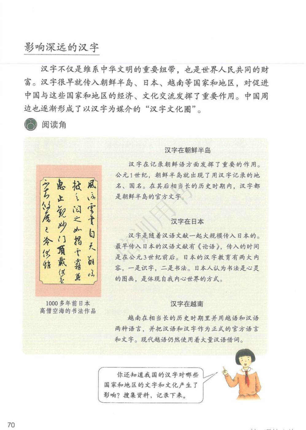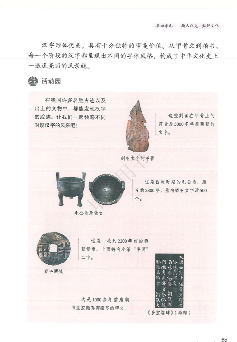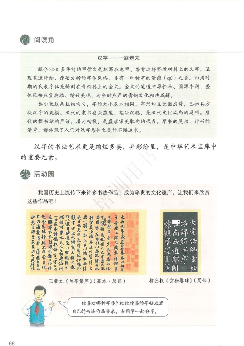 ②了解汉字的悠久历史和发展特点,学习欣赏独特的书法艺术。