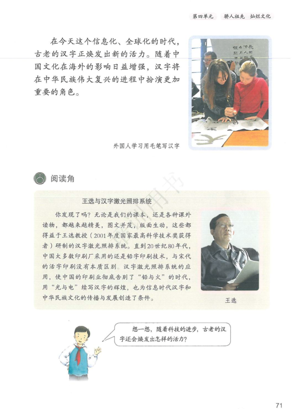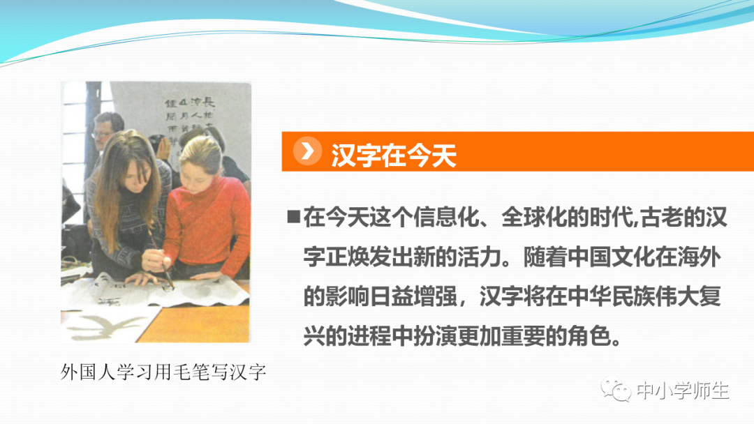 小结:在今天这个信息化、全球化的时代,古老的汉字正焕发出新的活力。随着中国文化在海外的影响日益増强,汉字将在中华民族伟大复兴的进程中扮演更加重要的角色。