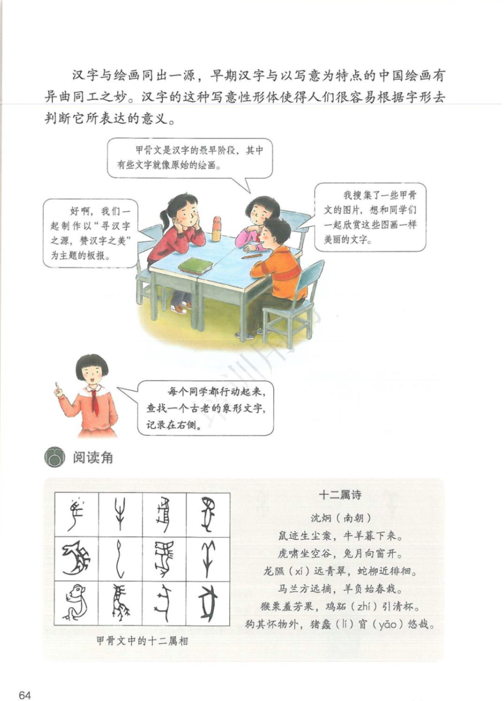 2、汉字形体优美,具有独特的审美价值。仿照 P64 面阅读角写出 12 生肖。