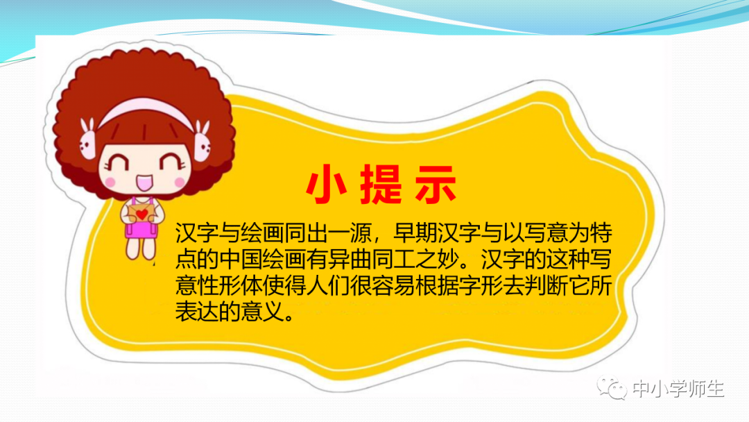小结: 汉字自古至今一直顽强地坚持自己独特的表意性,每一个汉字都蕴含着丰富的古代文化信息。一个个字符就如同中华文化的化石,传递着来自古代社会的音讯,描绘了中华文化发展的轨迹。