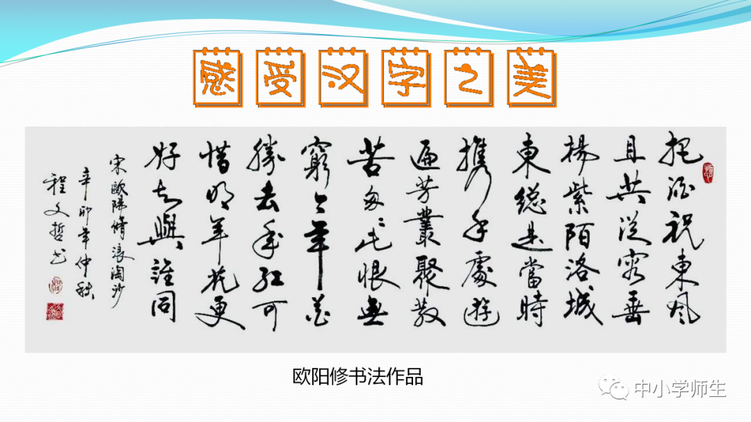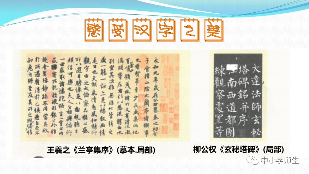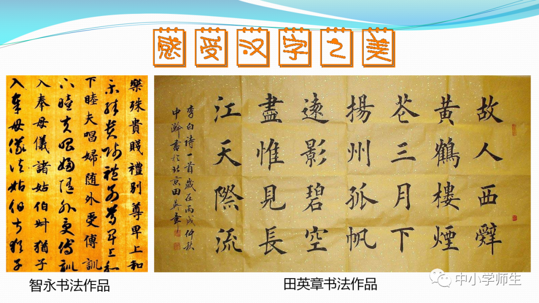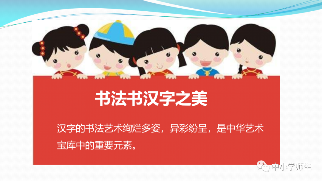 小结:汉字的书法艺术绚烂多姿,异彩纷呈,是中华艺术宝库中的重要元素。