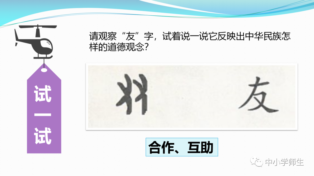 ①小组讨论:“友”字反映出中华民族怎样的道德观念?