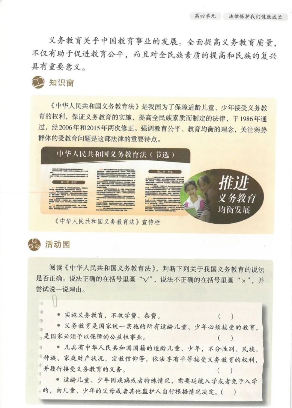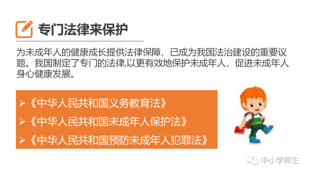 3、专门为保护未成年人成长而制定的法律有《中华人民共和国义务教育法》、