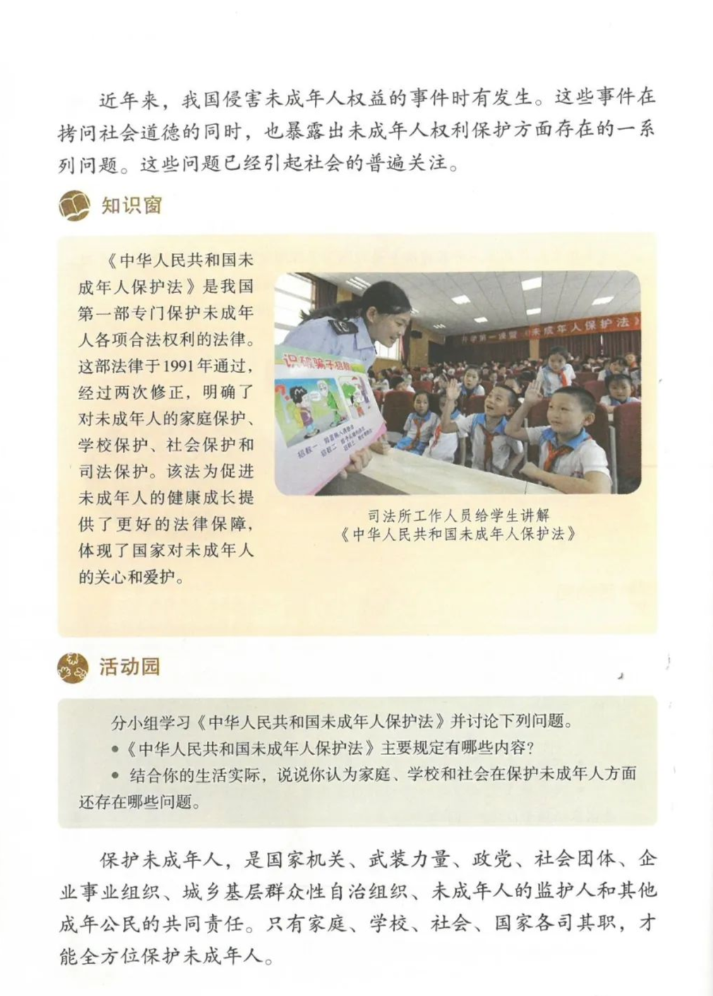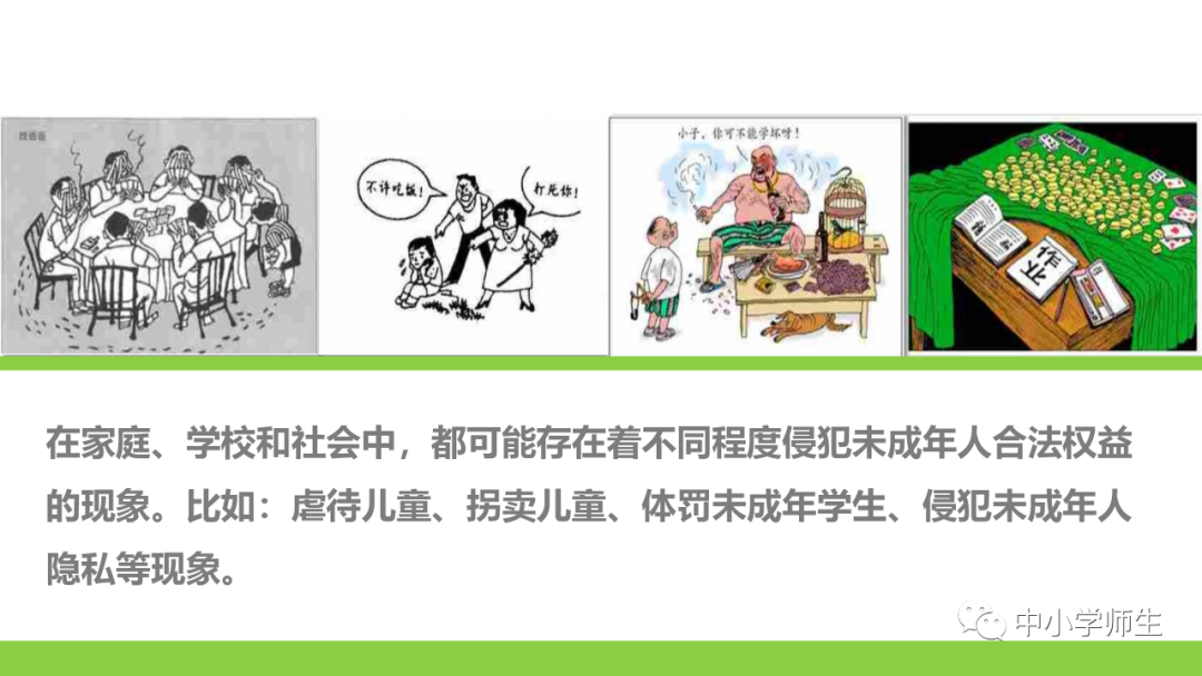 2、分析生活中侵犯未成年人合法权益的案例资料,能够认识和判断违反未成年人保护法的现象和行为。