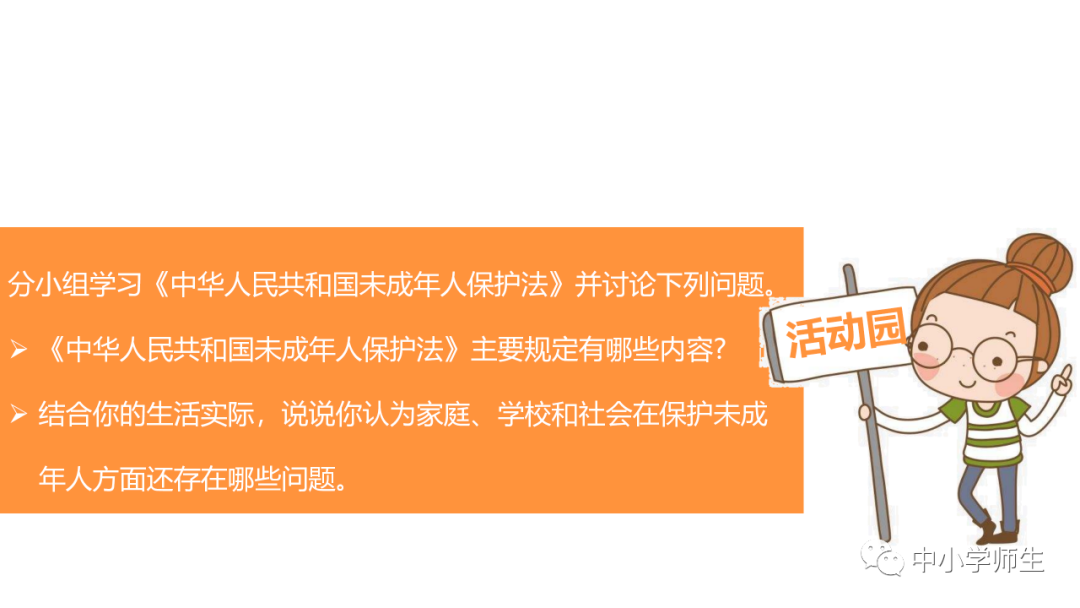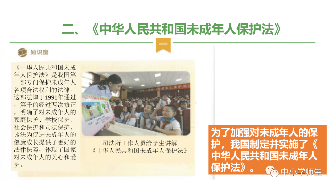 1、生活回望,交流展示:2、为了保护未成年人的健康成长,我国制定了两部专门保护未成年人的法律,他们是《未成年人保护法》和《预防未成年人犯罪法》。关于未成年人保护的内容,我国未成年人保护法规定的四个方面的保护,分别是:家庭、学校、社会、司法。