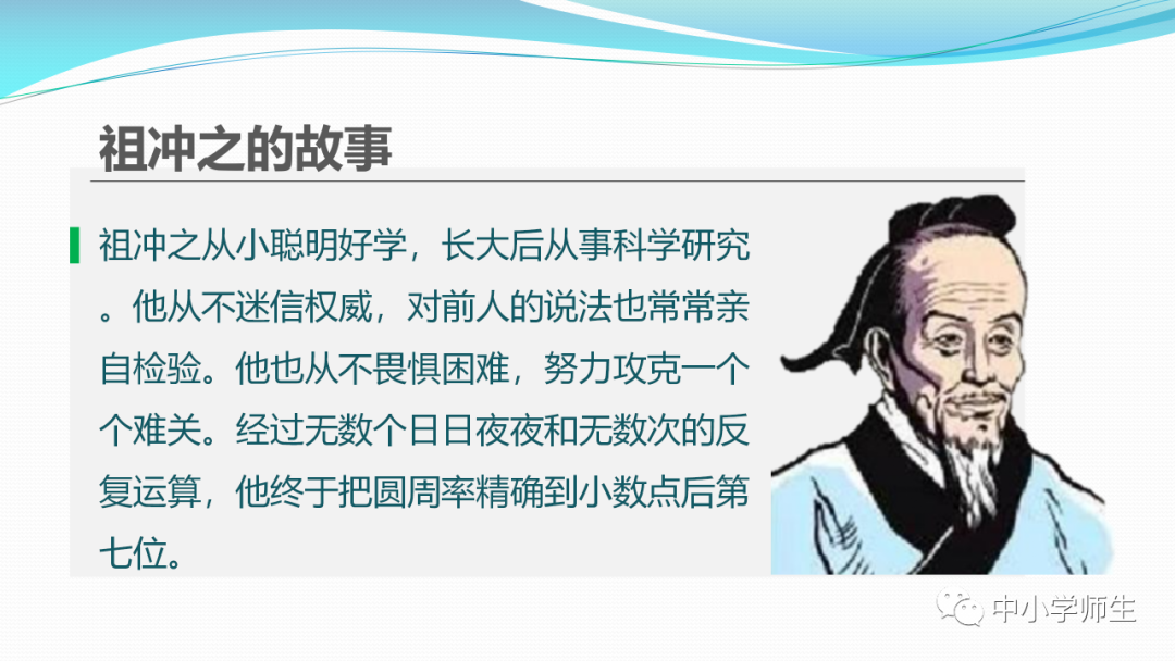 如: 出示祖冲之头像,了解祖冲之的简单生平。