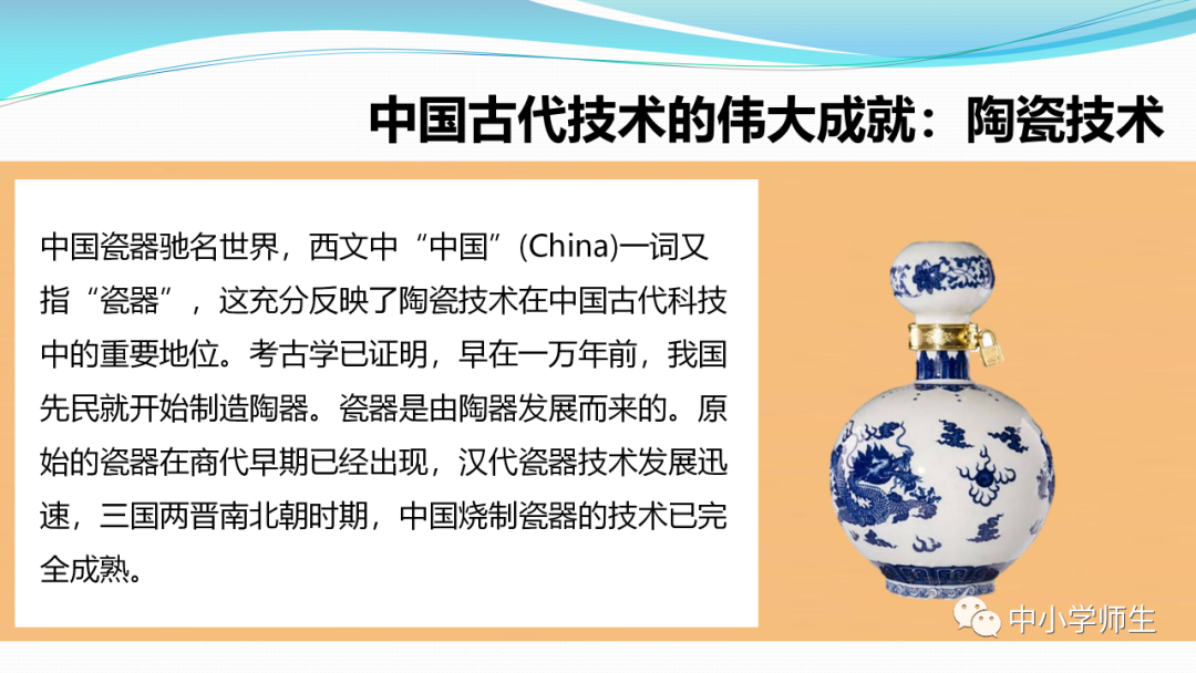 ①从青铜器、丝绸、瓷器等方面感受我国古代领先世界的技术创造。