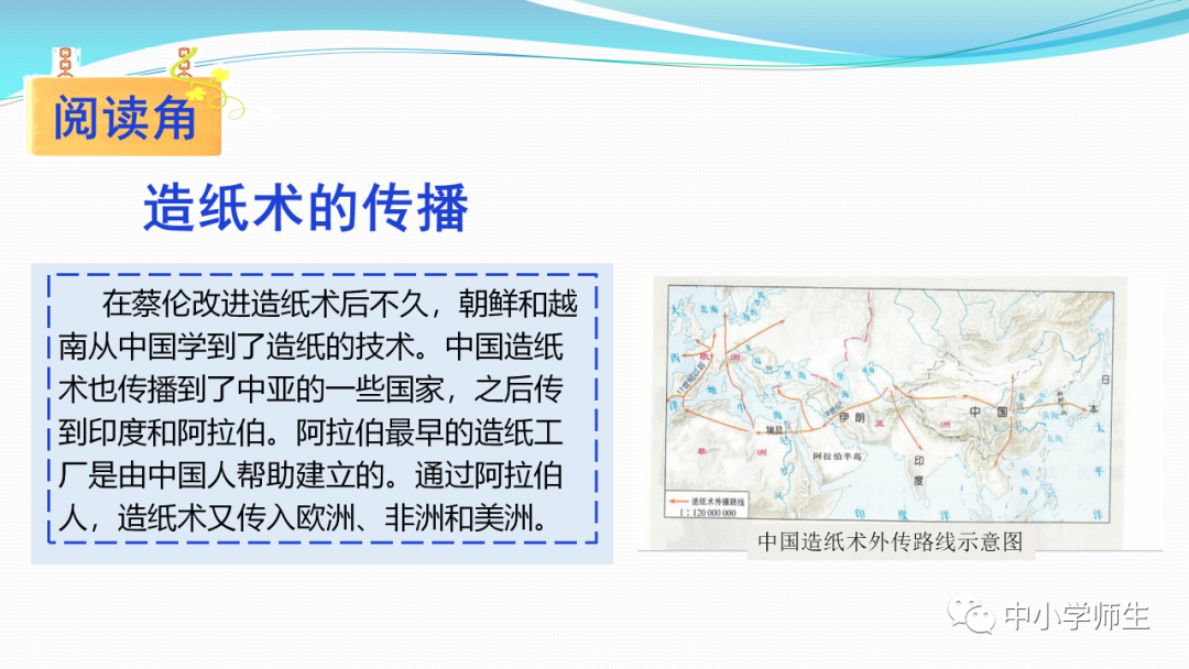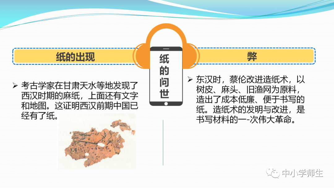 师:我们先来看造纸术,你能讲讲你知道的关于古代造纸的故事吗?