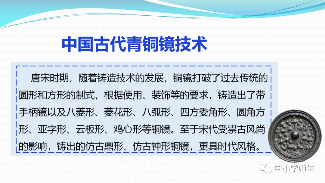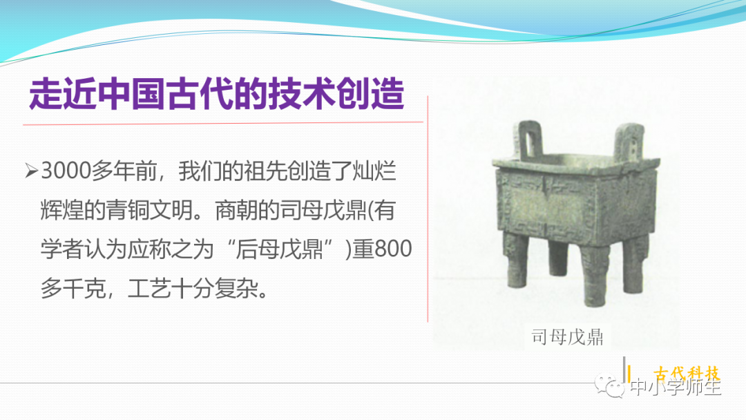 2.今天就让我们来继续学习第四单元的第9课《古代科技 耀我中华》通过本课学习,同学们至少要达到以下两个目标:①从青铜器、丝绸、瓷器等方面感受我国古代领先世界的技术创造。