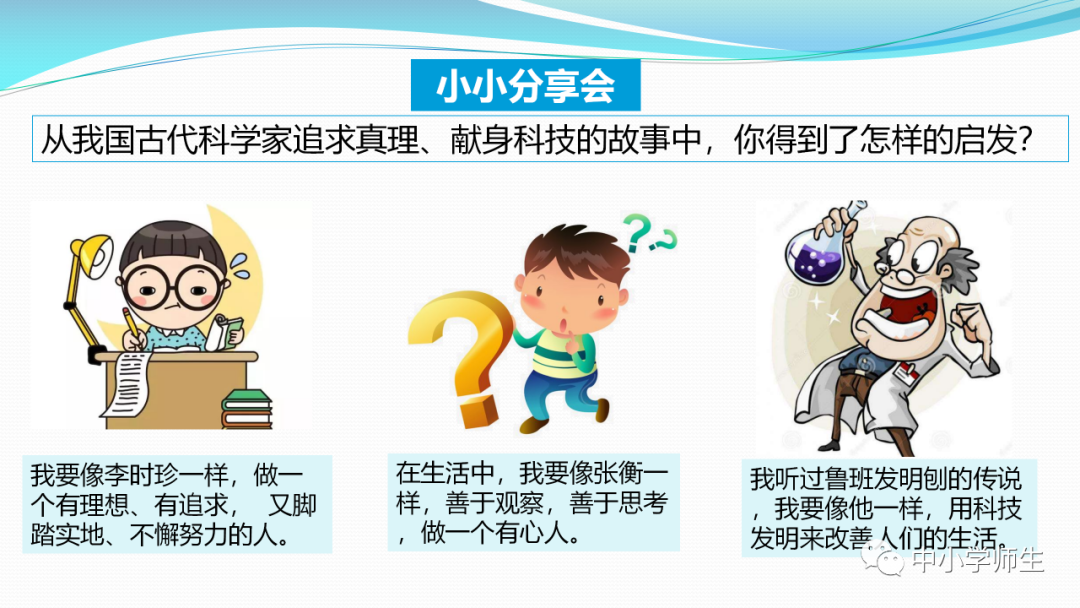 小结:我们要学习他们追求理想、持之以恒、勇于创新的优秀品质。