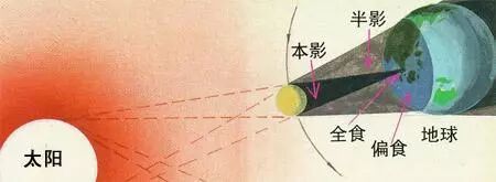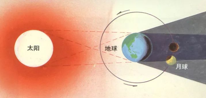 (月食)则是月球运行到地球的影子中,三者大致在一条直线上时,(地球)挡住了太阳射向月球的光。