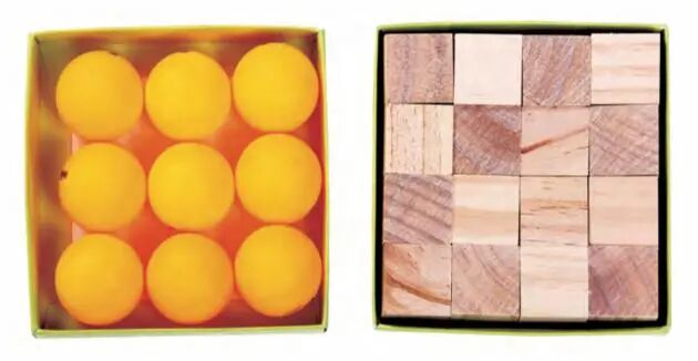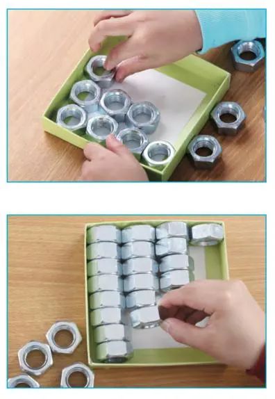 6. 在同样的盒子里,不同的平铺方式装下的物体的数目是不同的。