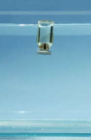 (3)放入水中并测试方向:将组装好的磁针轻轻放在水面上,待其静止后,用真正的指南针确定方向,看看浮在水上的磁针,其针尖和针尾所对应的方向,然后在吹塑纸上标上南北。